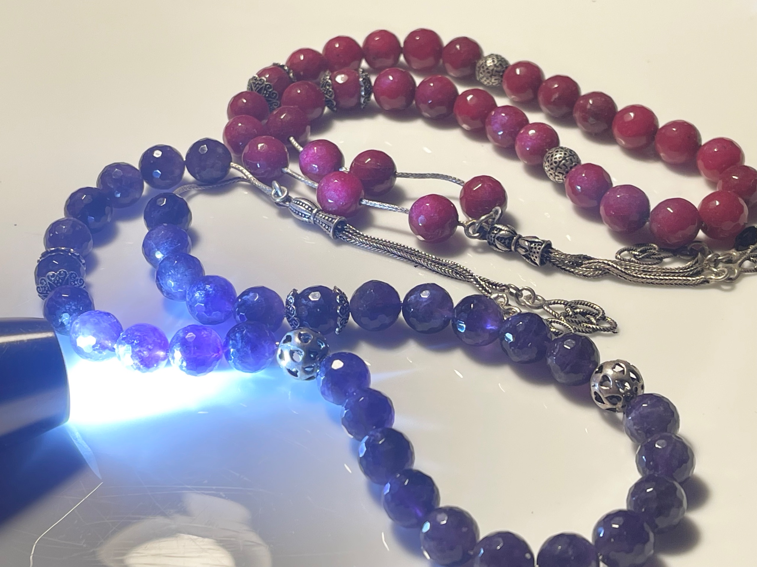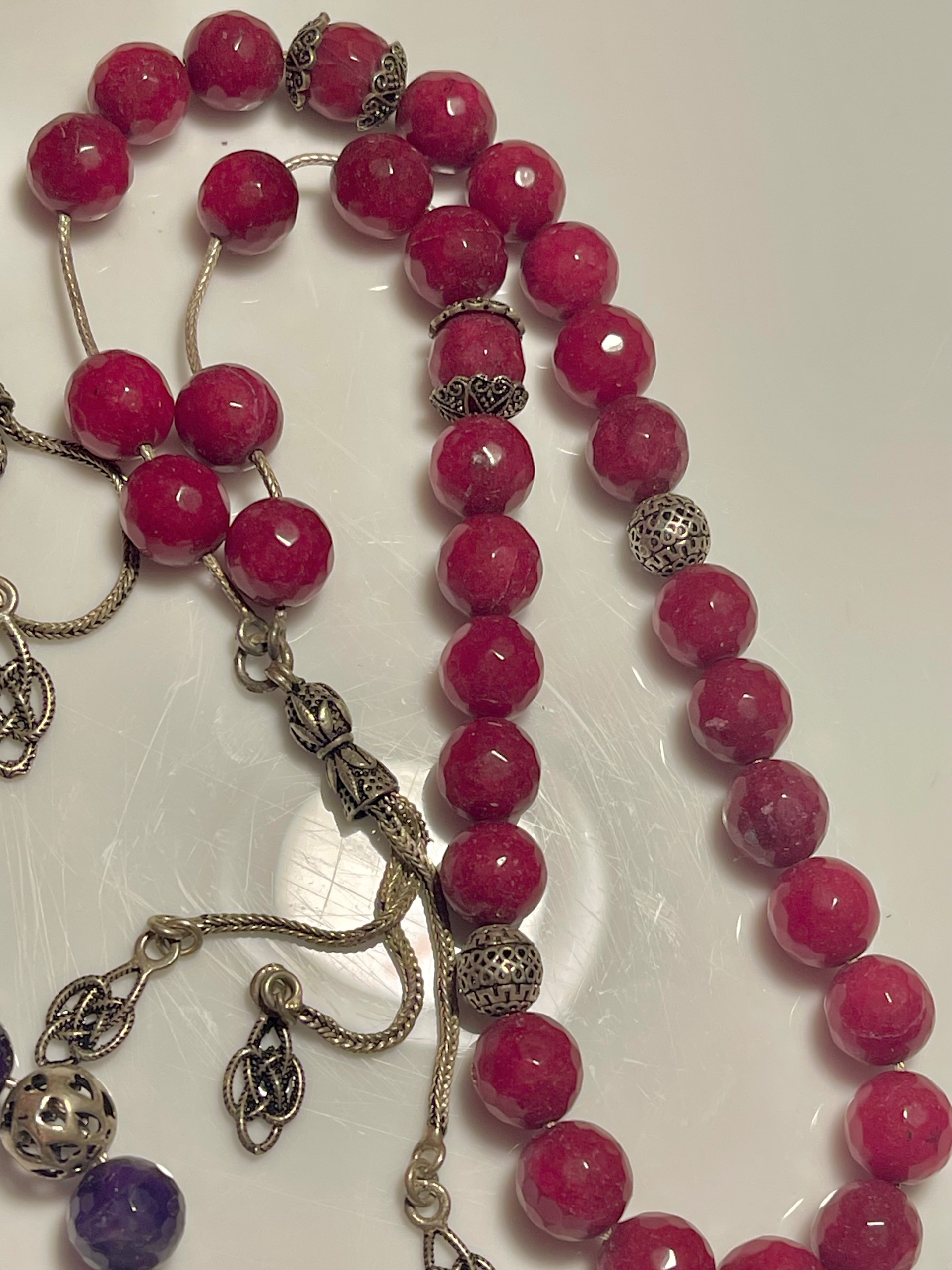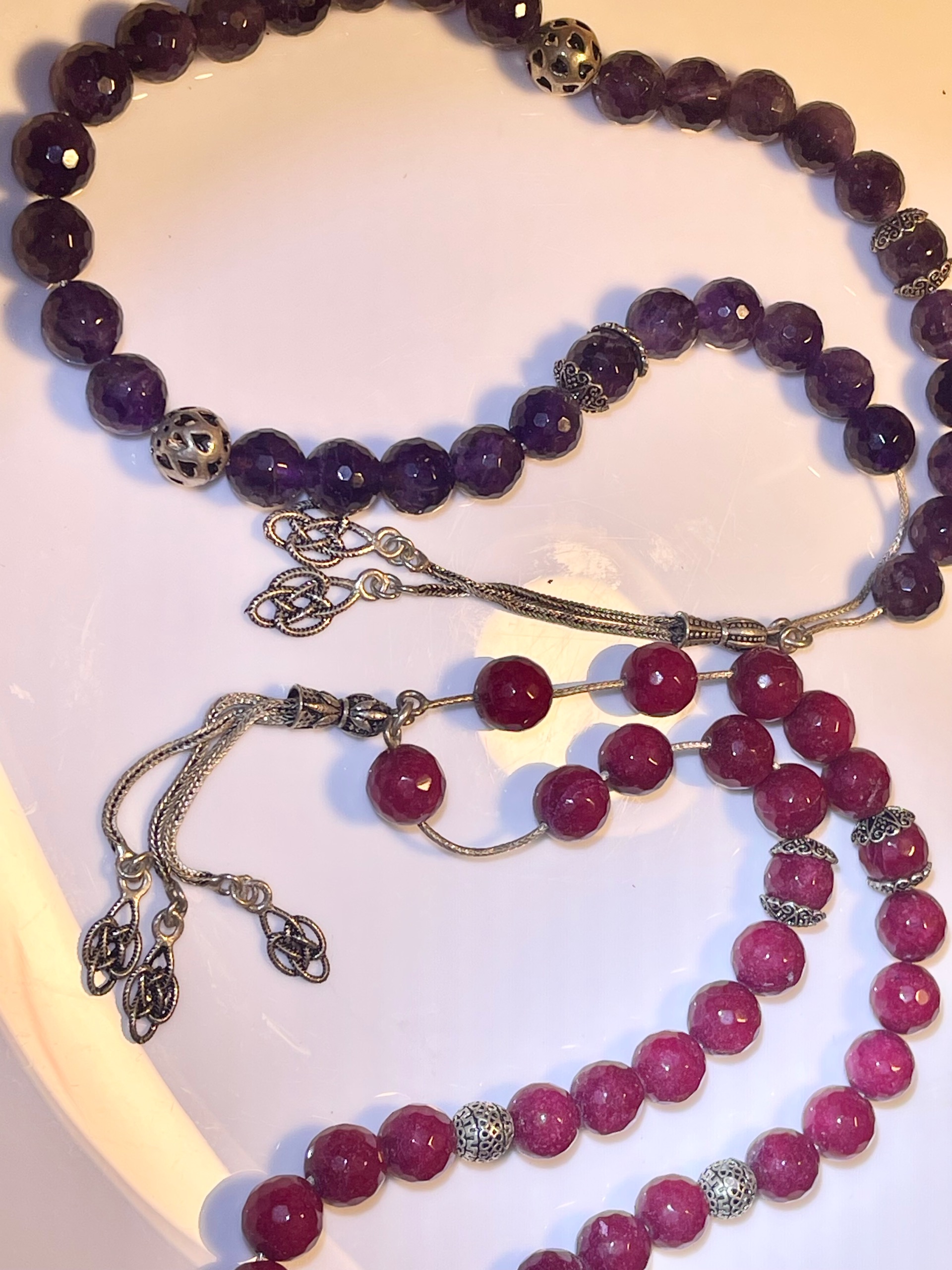 حراج دو عدد تسبیح کلکسیونی اصل سنگ یاقوت و امیتیس