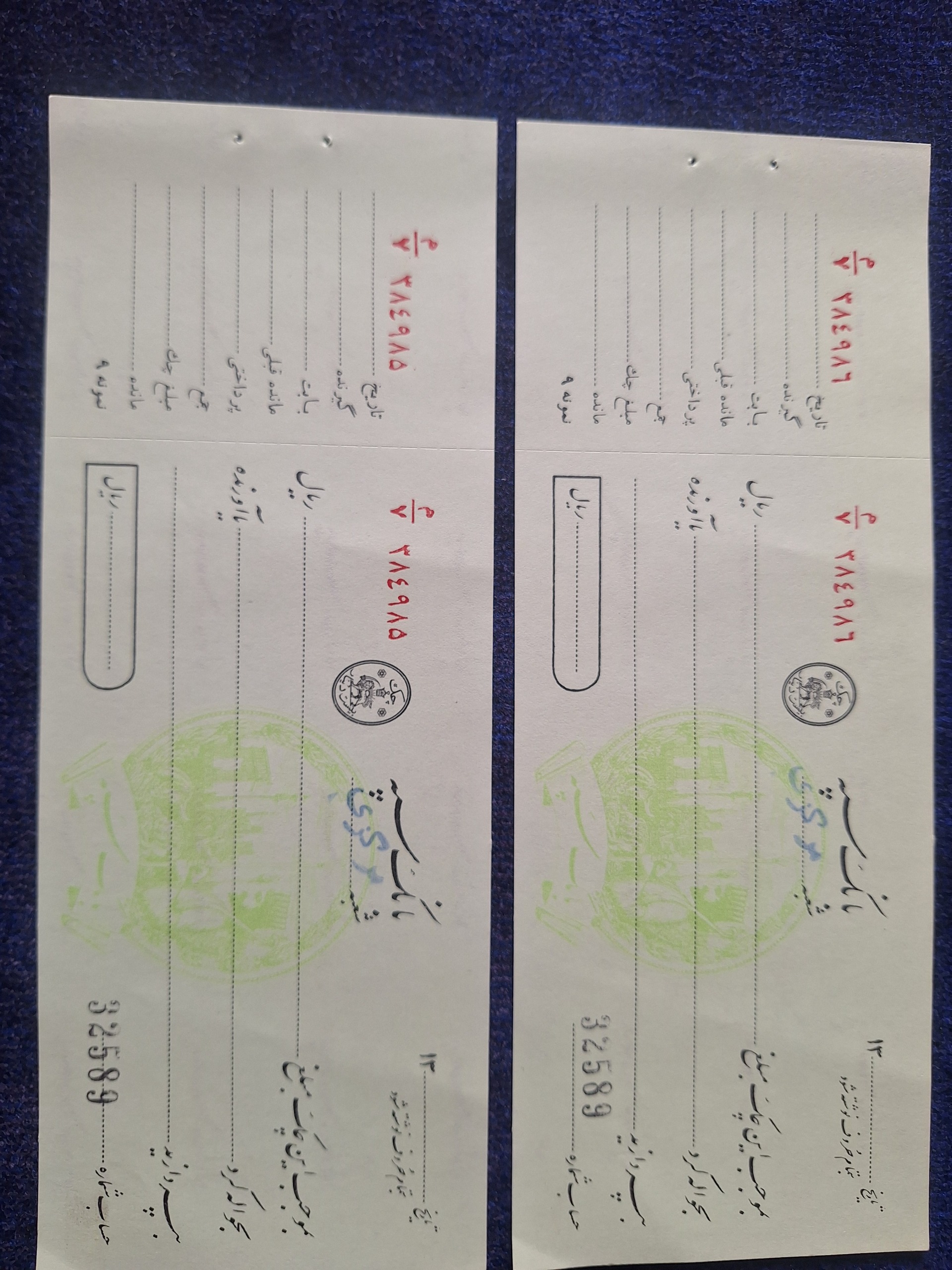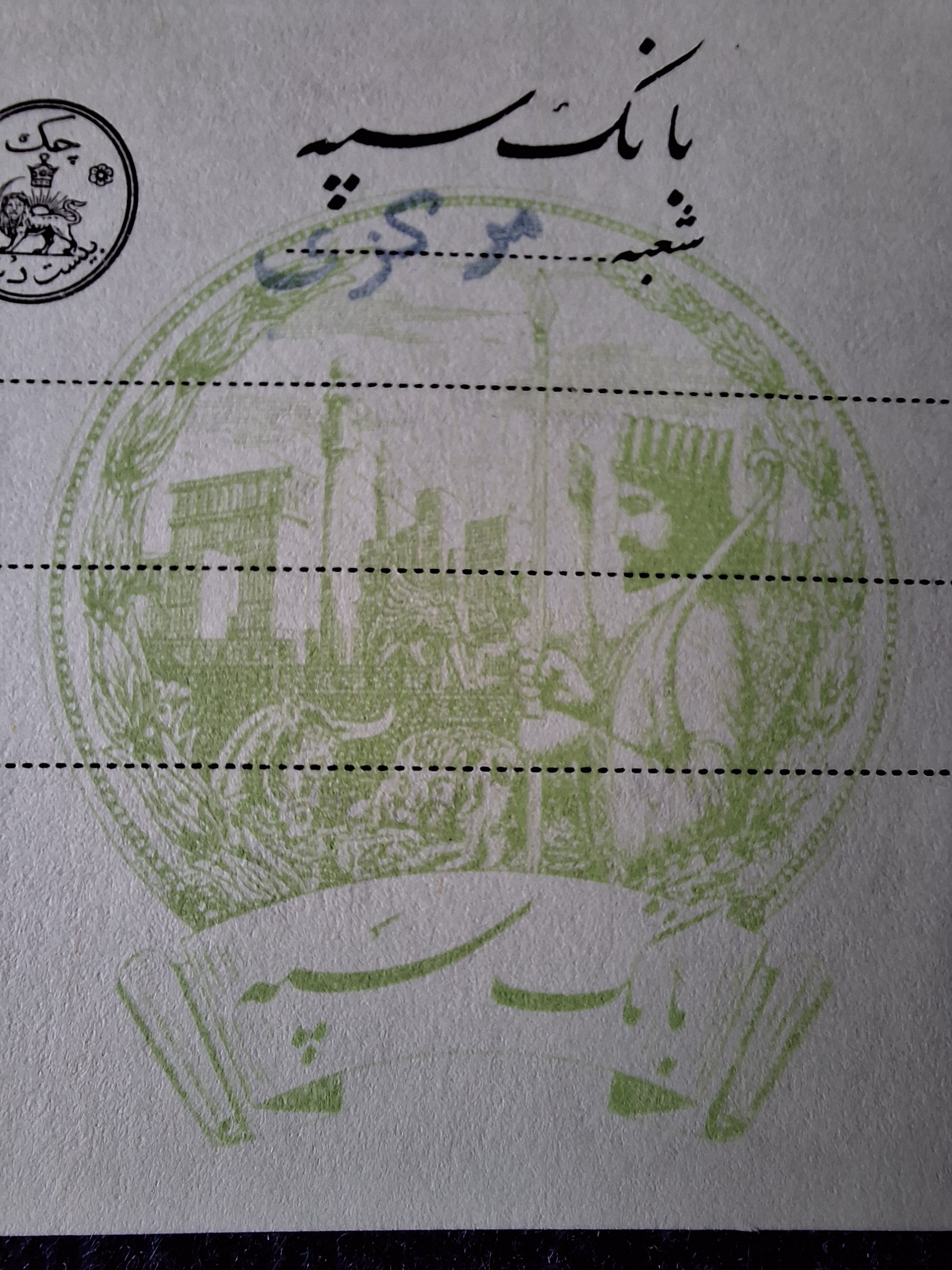 جفت چک سایز بزرگ بانک سپه با تصویر سرباز هخامنشی وتخت جمشید ونبرد شیر و گاو