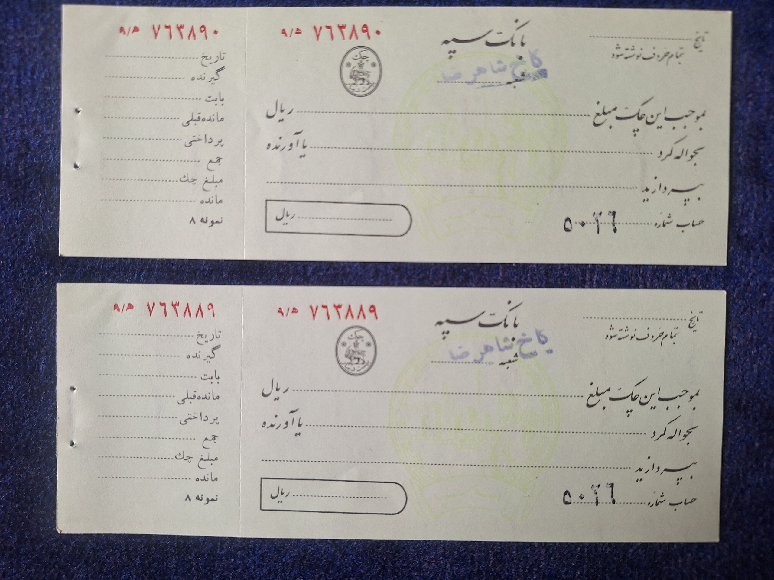 جفت چک بانک سپه سایز کوچک با تصویر سرباز هخامنشی وتخت جمشید