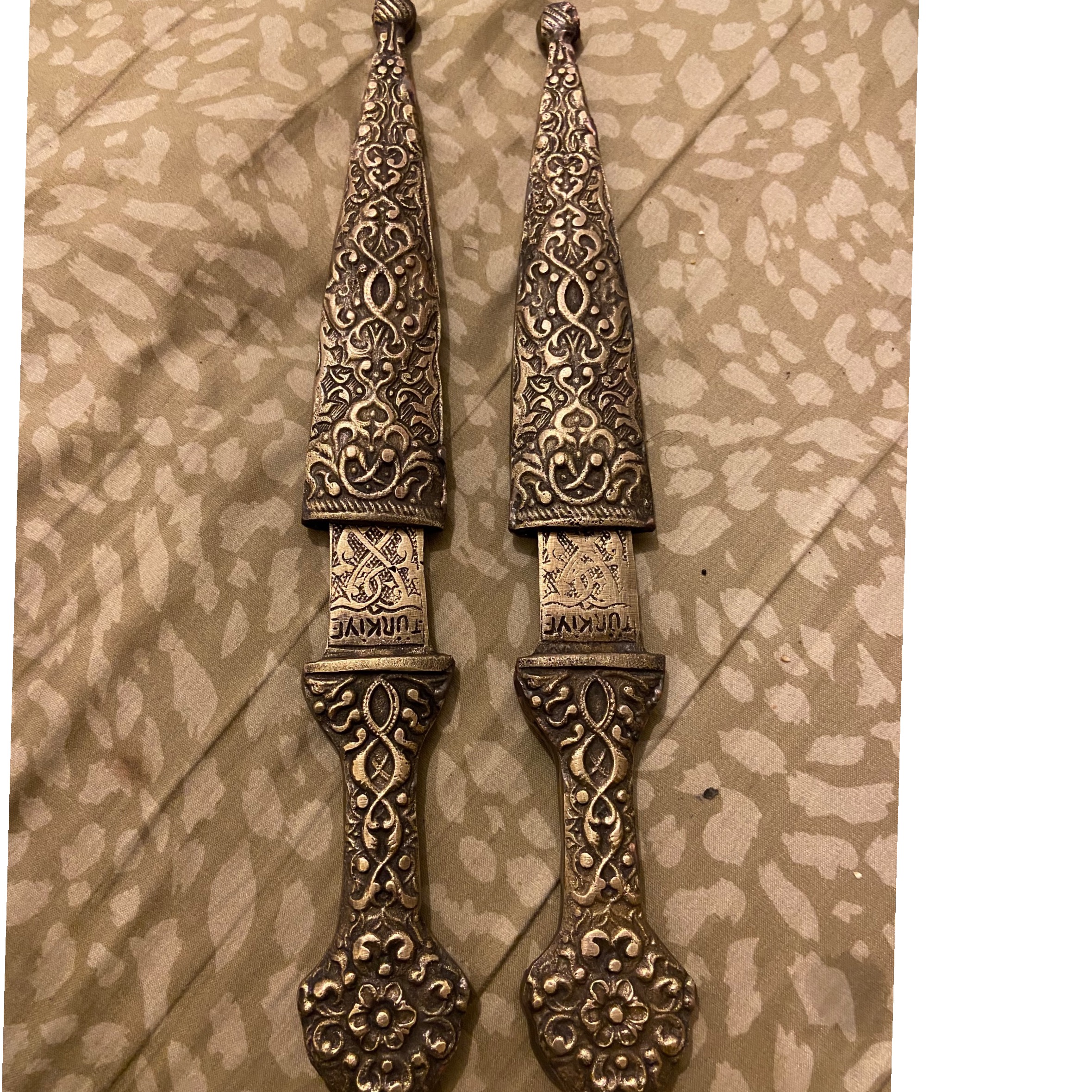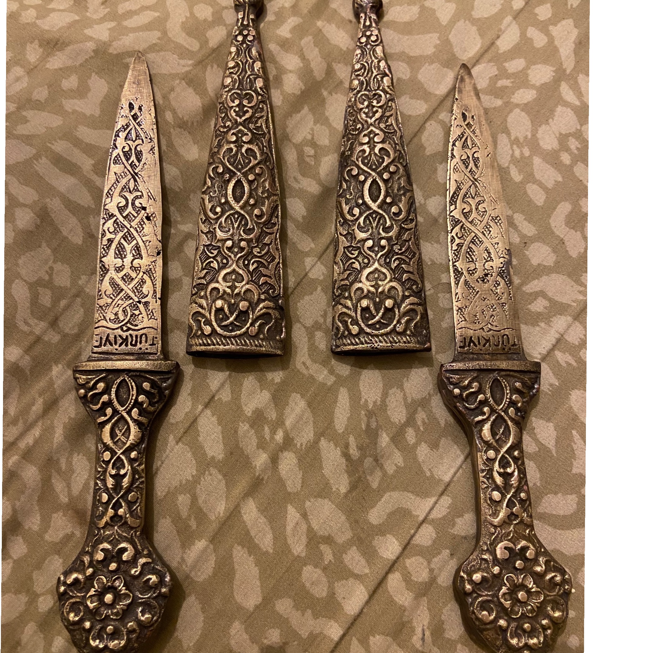 چاقوهای تمام برنزی سنگین و ضخیم دسته تیغه غلاف همه برنزی طول چاقو ها 30 سانت قیمت جفت 4 میلیون