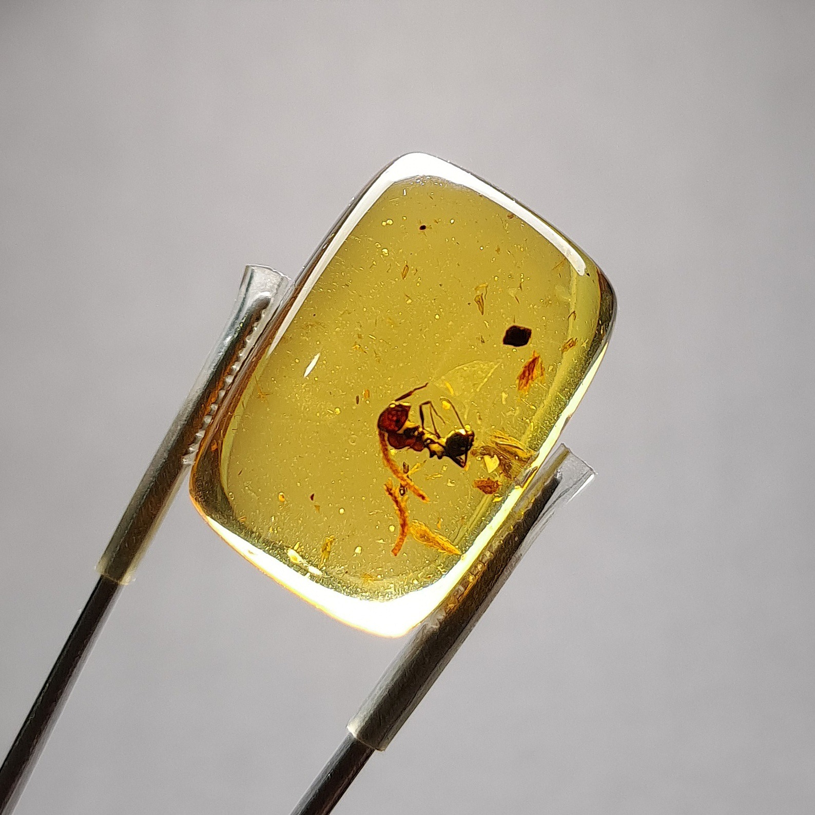 همانطور که در عکس مشاهده میکنید، بصورت خارق العاده ای، یک مورچه بطور واضح و همچنین فسیل ها و درونگیر های مختلف با اشکال متفاوت زیبا، در این کهربا به دام افتاده اند که میتوان، میلیونها سال گذشت زمان را در این گوهر زیبا نظاره کرد. ضمن اینکه برای بهتر دیده شدن دنیای درون این گوهر، بهتراست ادخال و فسیل های شگفت انگیزِ درون آن را از نزدیک مشاهده کرد.