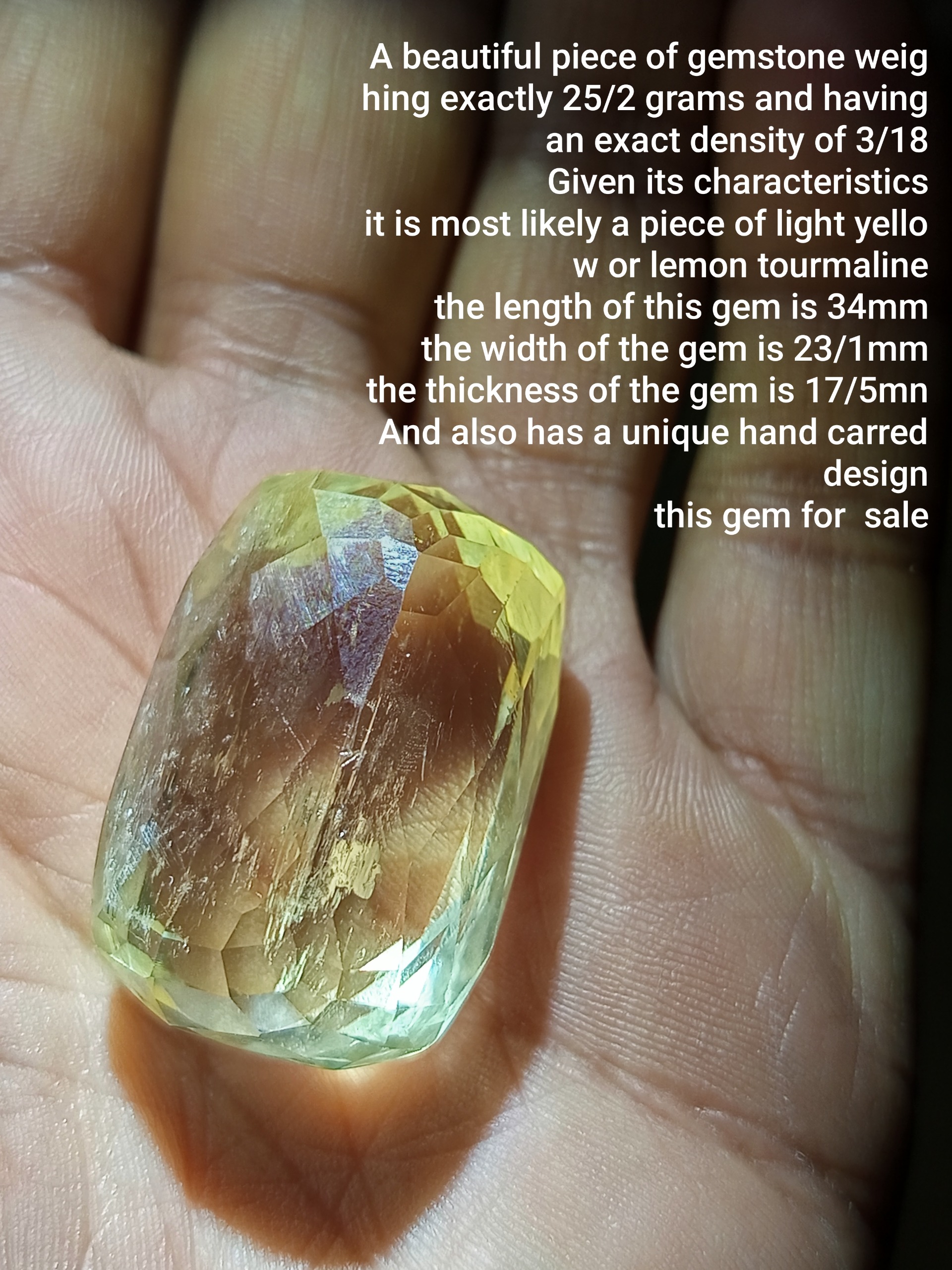 یک قطعه بزرگ نگین زرد لیمویی تورمالین وزن 25/2گرم