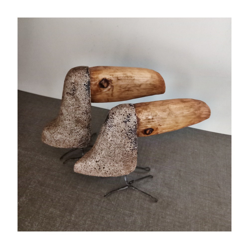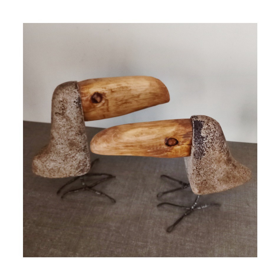 این دو مجسمه پرنده از محصولات گالری هنری پیرایه و دستساز و همچنین تولید تک نسخه هستند.