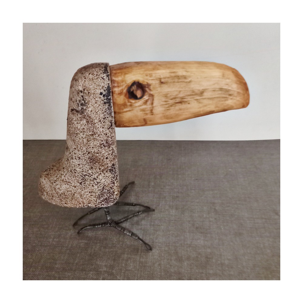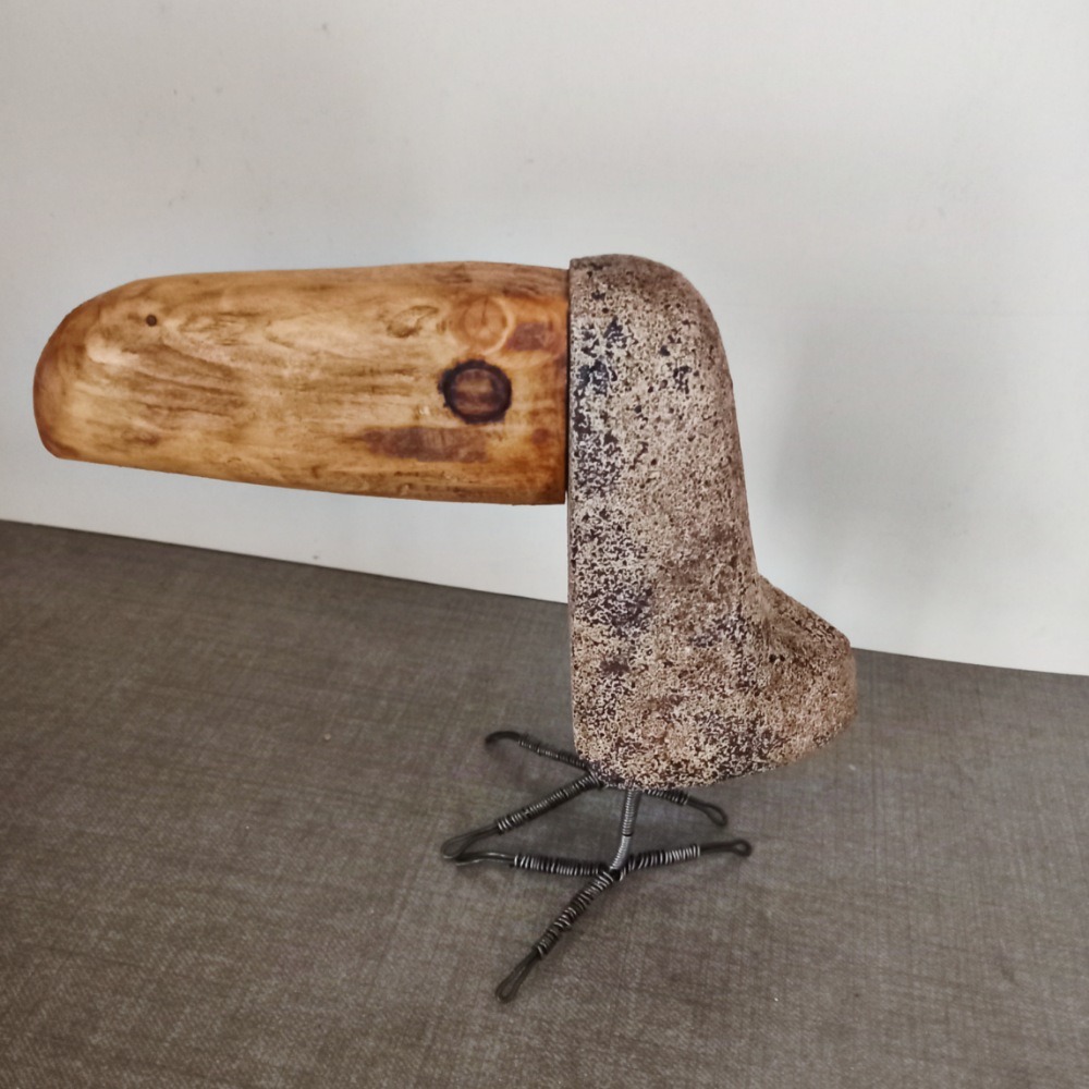 منقار از جنس چوب و پاها از جنس مفتول فلزی است.