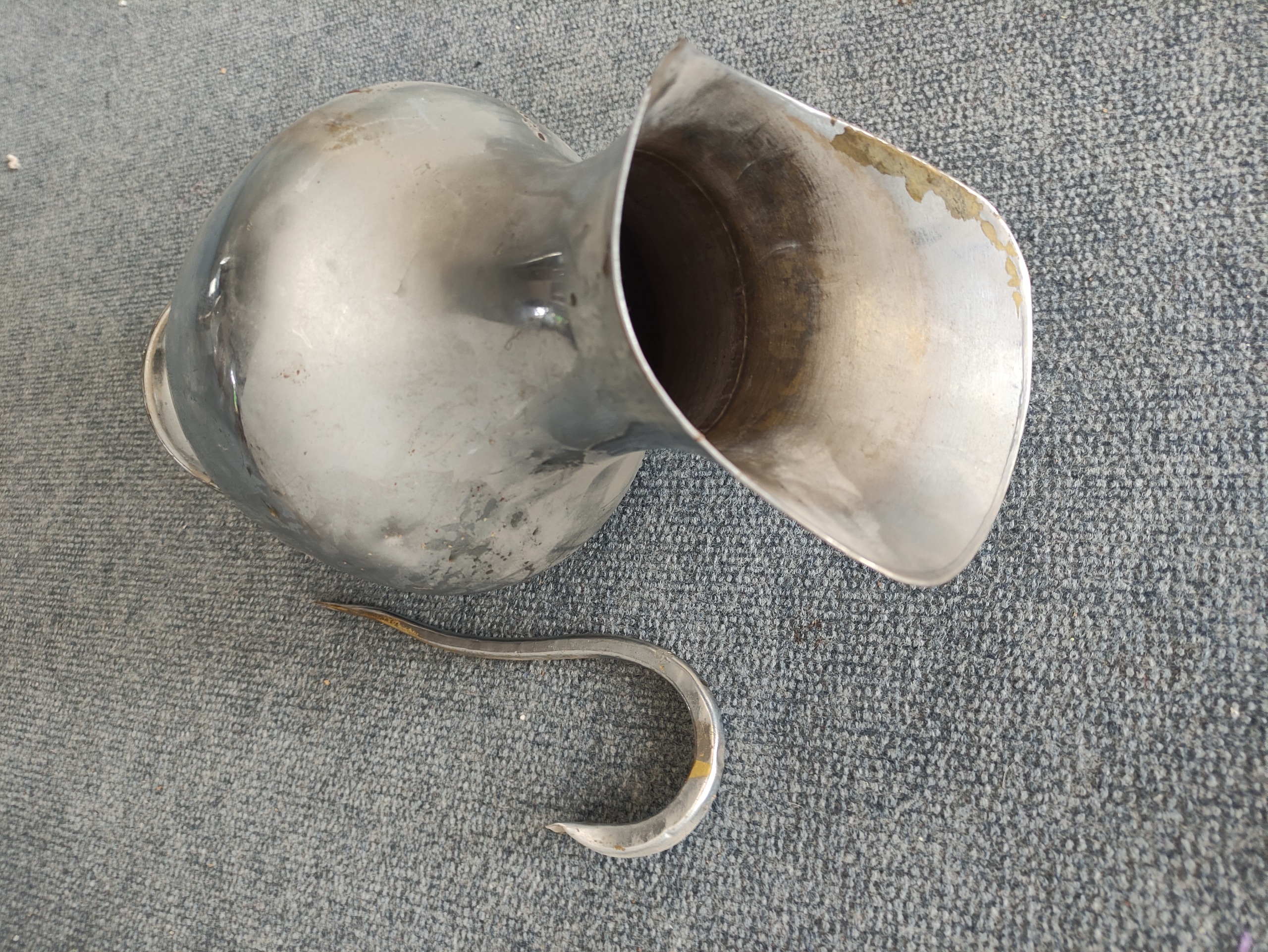 پارچ بزرگ سایز بلند برنجی روکش آبداده شده هست زیرش برج زرد دسته کنده شده با جوش برنج میشه چسبوند وزن 1100 گرم پول ضایعات ورق برنجی الان کیلو850هست یعنی 899پول برنج پارچه همچنین 900 گرم سیم مختلف هست اونم 499 جمعا 2000 گرم میشه 1399 با هم بخرید 100 کم تر