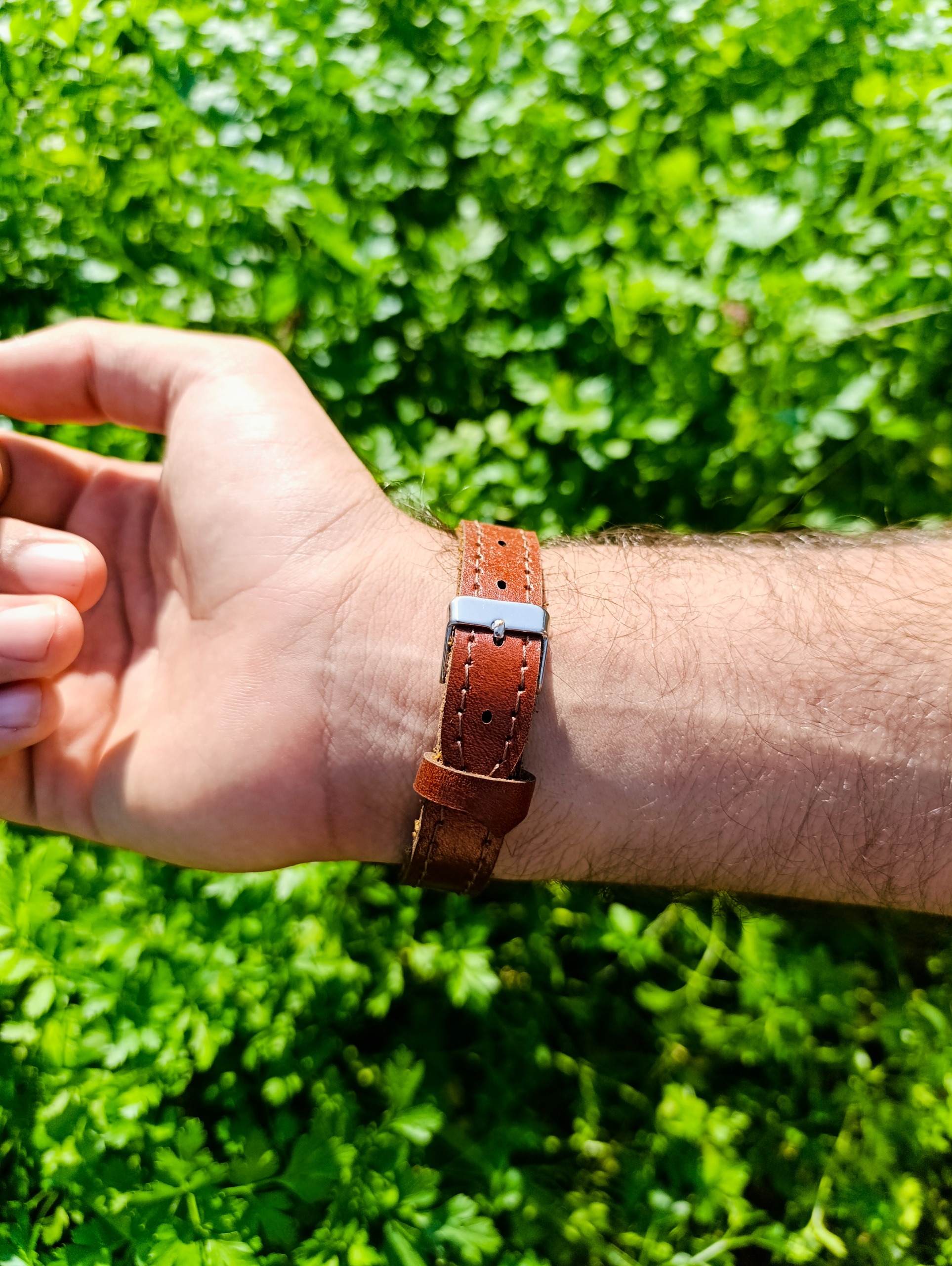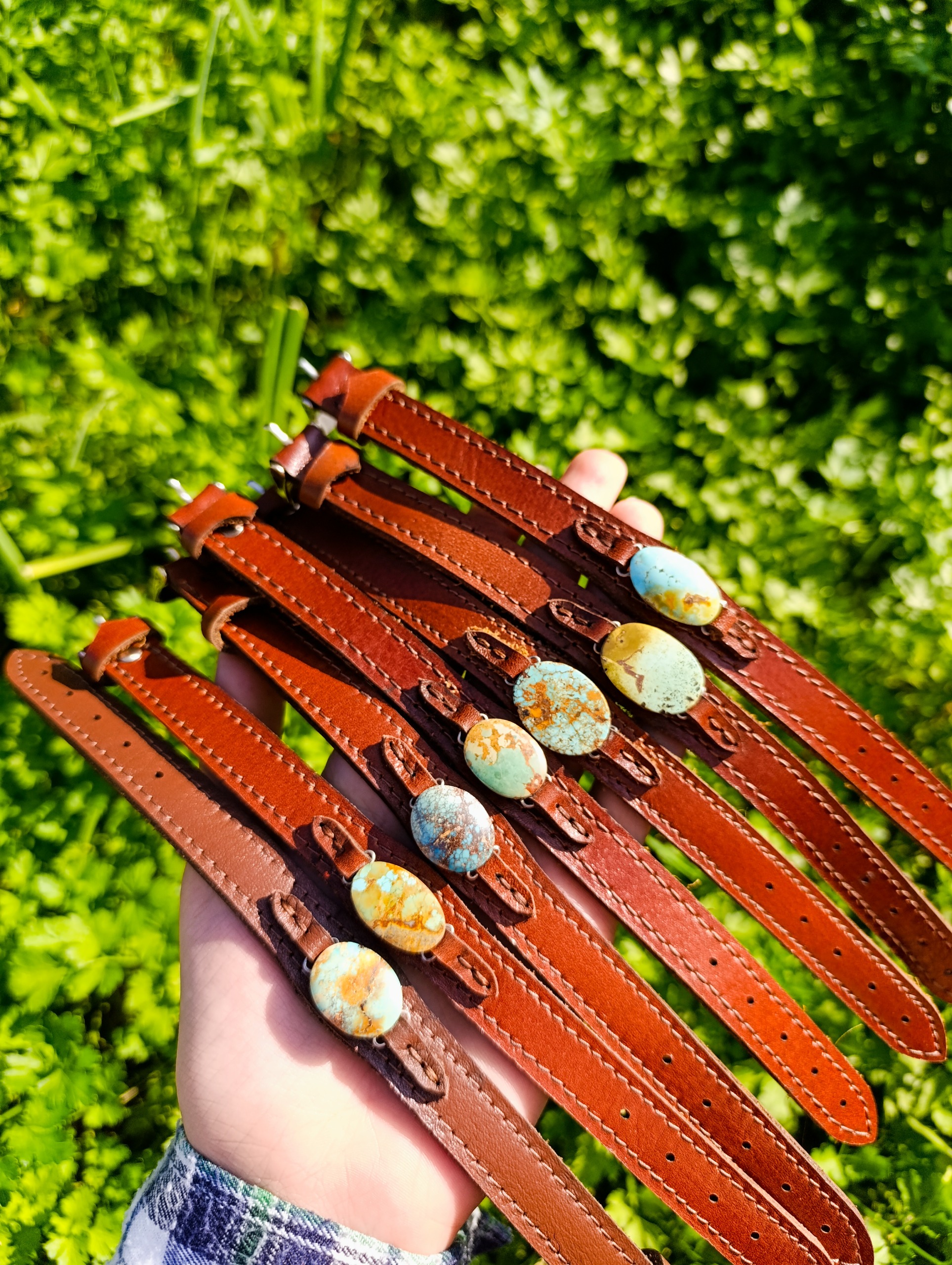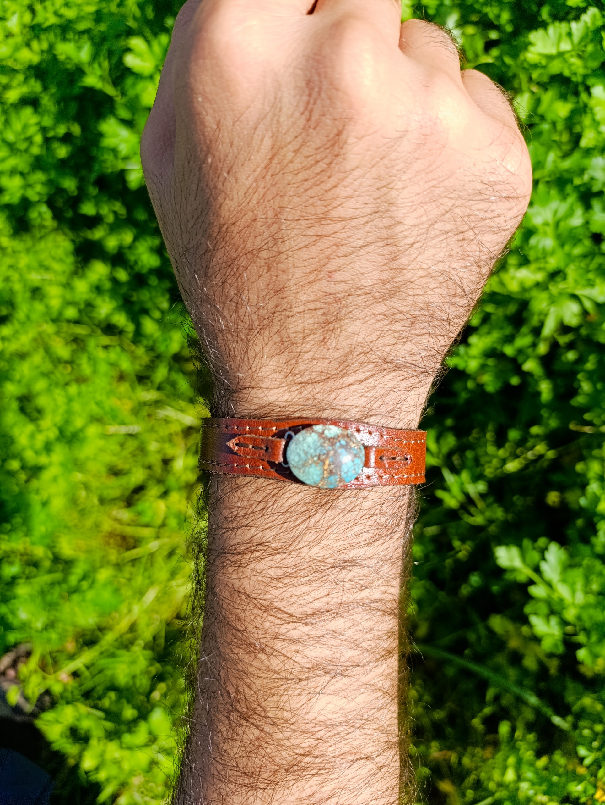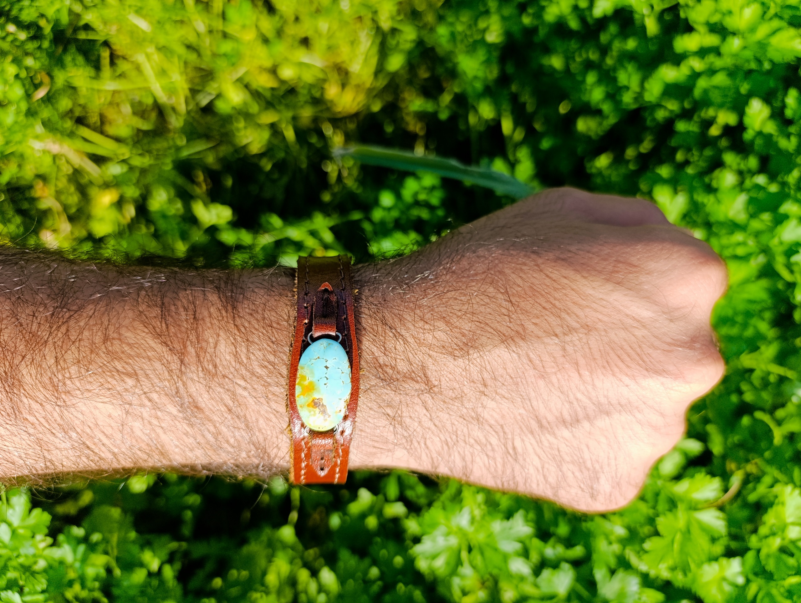 دستبند مردانه با سنگ فیروزه نیشابور اصل بند چرم
