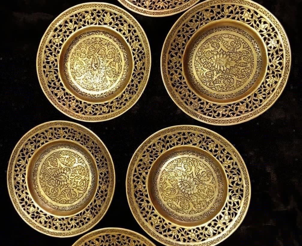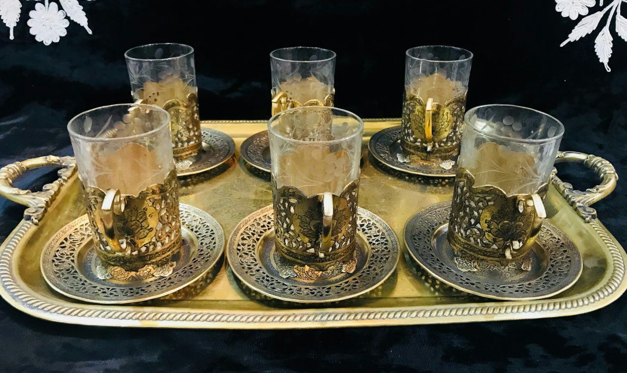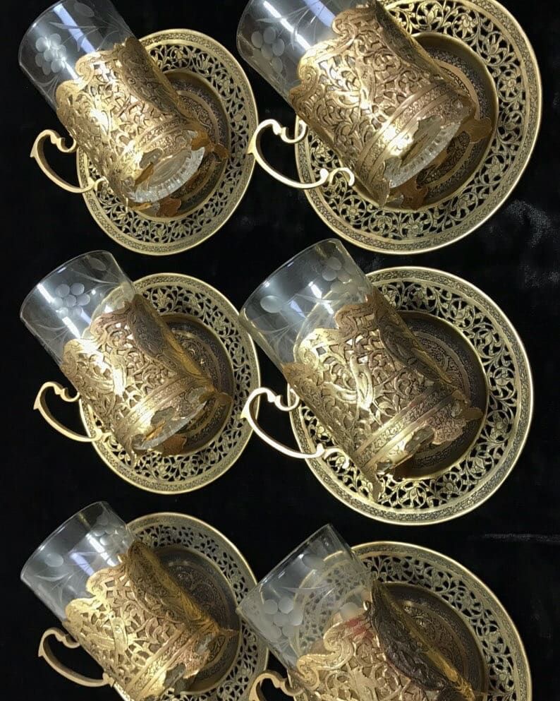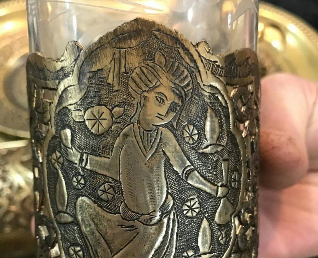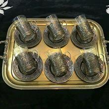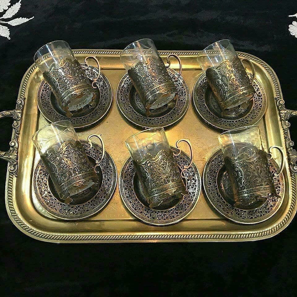 شربت خوری برنجی کهنه وخاص پیش دستیها شبکه و انگارهای زیبا لیوانها فرانسه اصلی کهنه کمیاب وکلکسیونی