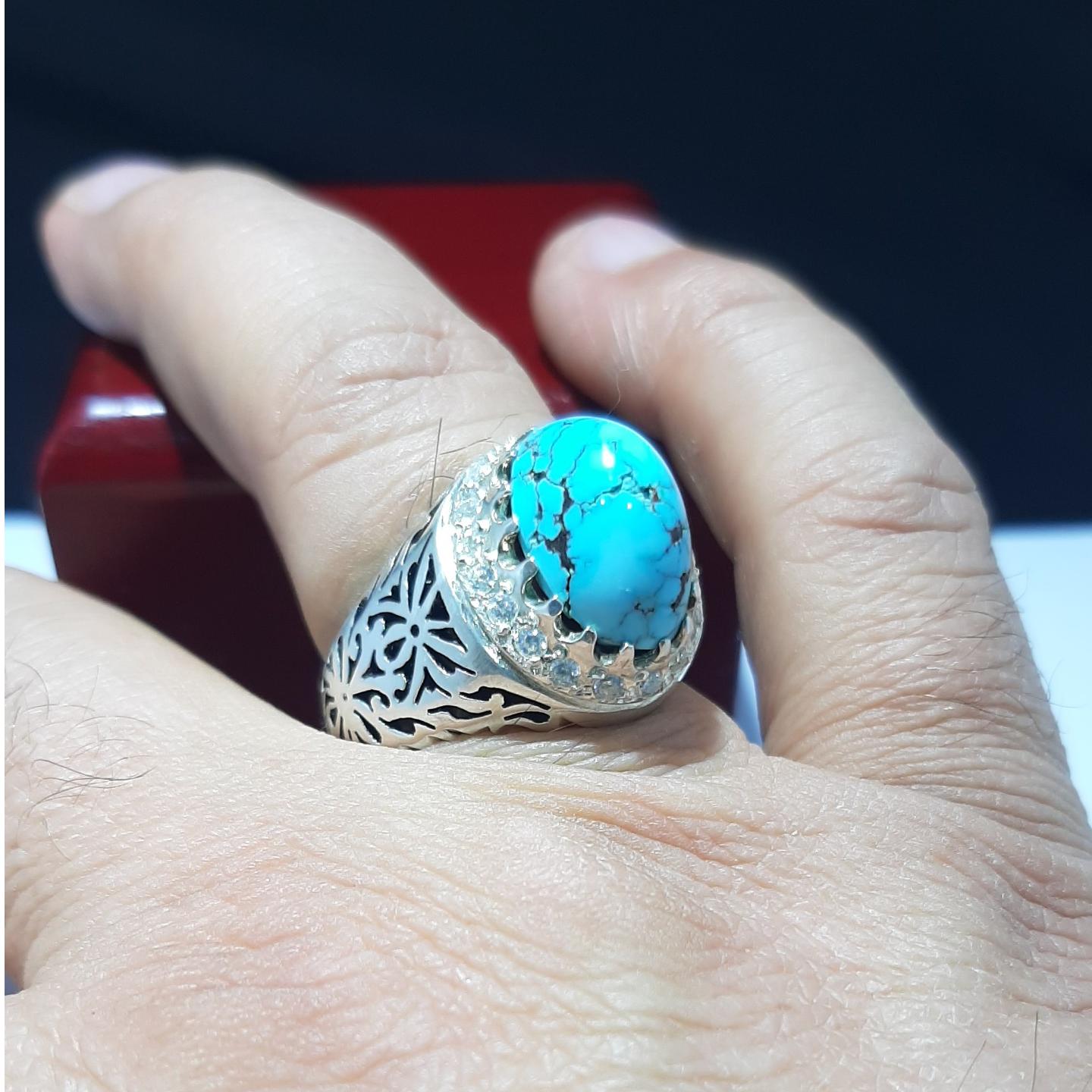 انگشتر نقره عیار بالا (925) با نگین فیروزه نیشابوری اصل کد 10004