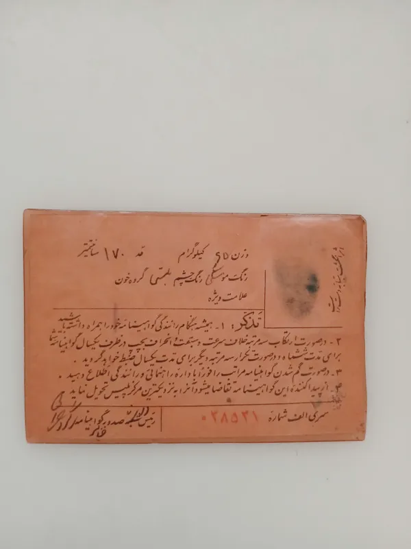 گواهینامه دوچرخه پایی زمان پهلوی قدمت دار با لباس ارتشی زمان پهلوی، عکس اصلی و واقعا کمیاب هست تو گوگل سرچ کردم شبیه ش رو ندیدم برای فروش کسی داشته باشه ، در انتها با هرمبلغ پیشنهادی که ثبت شد و مطابق با تصاویر خدمت خریدار محترم ارسال خواهد شد،
