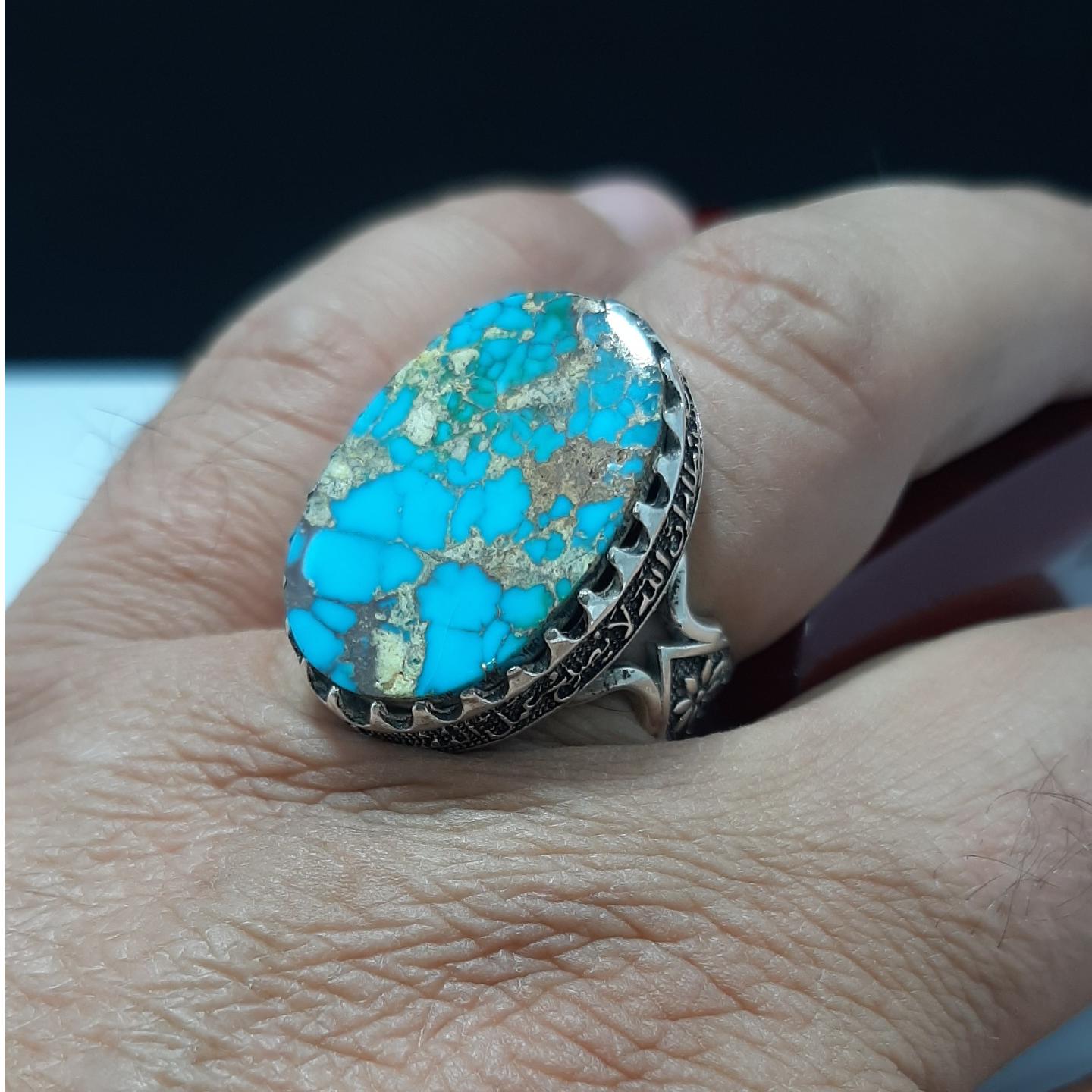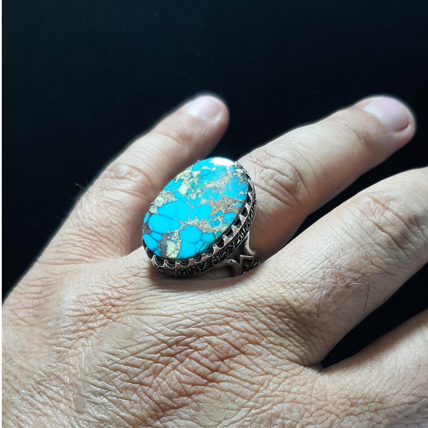انگشتر نقره عیار بالا (925) با نگین فیروزه نیشابوری اصل کد 10007