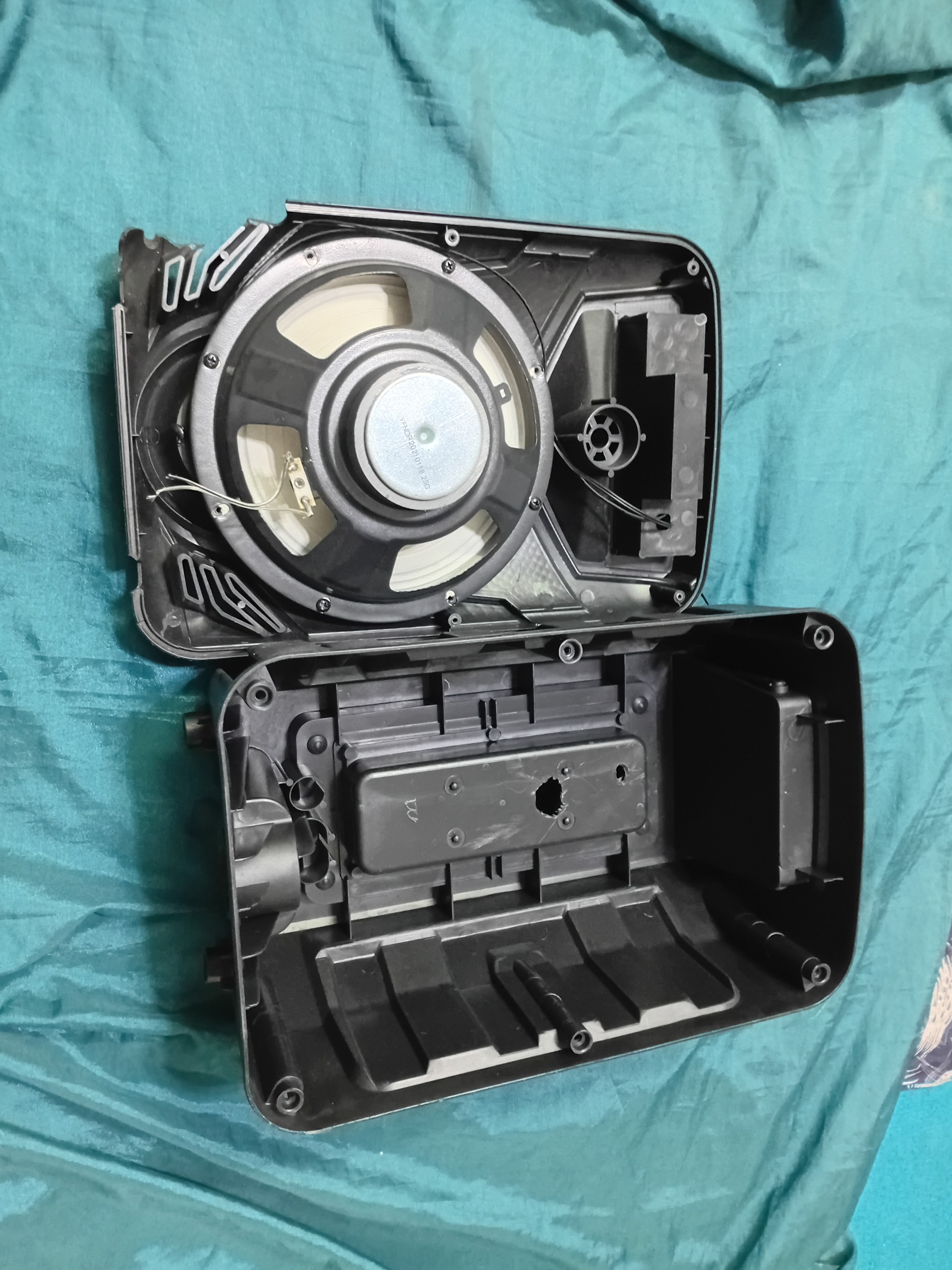 اسپیکر 8 اینچ بوده فقط باکس خالی و بلندگو موجوده طبق تصاویر آمپیلی ندارد بلندگو 8 اینچ . باندش سالم در قدرت گوشه باکس شکستگی دارد مطابق تصاویر رقص نور و لامپ داخلش چیز دیگه ای ندارد