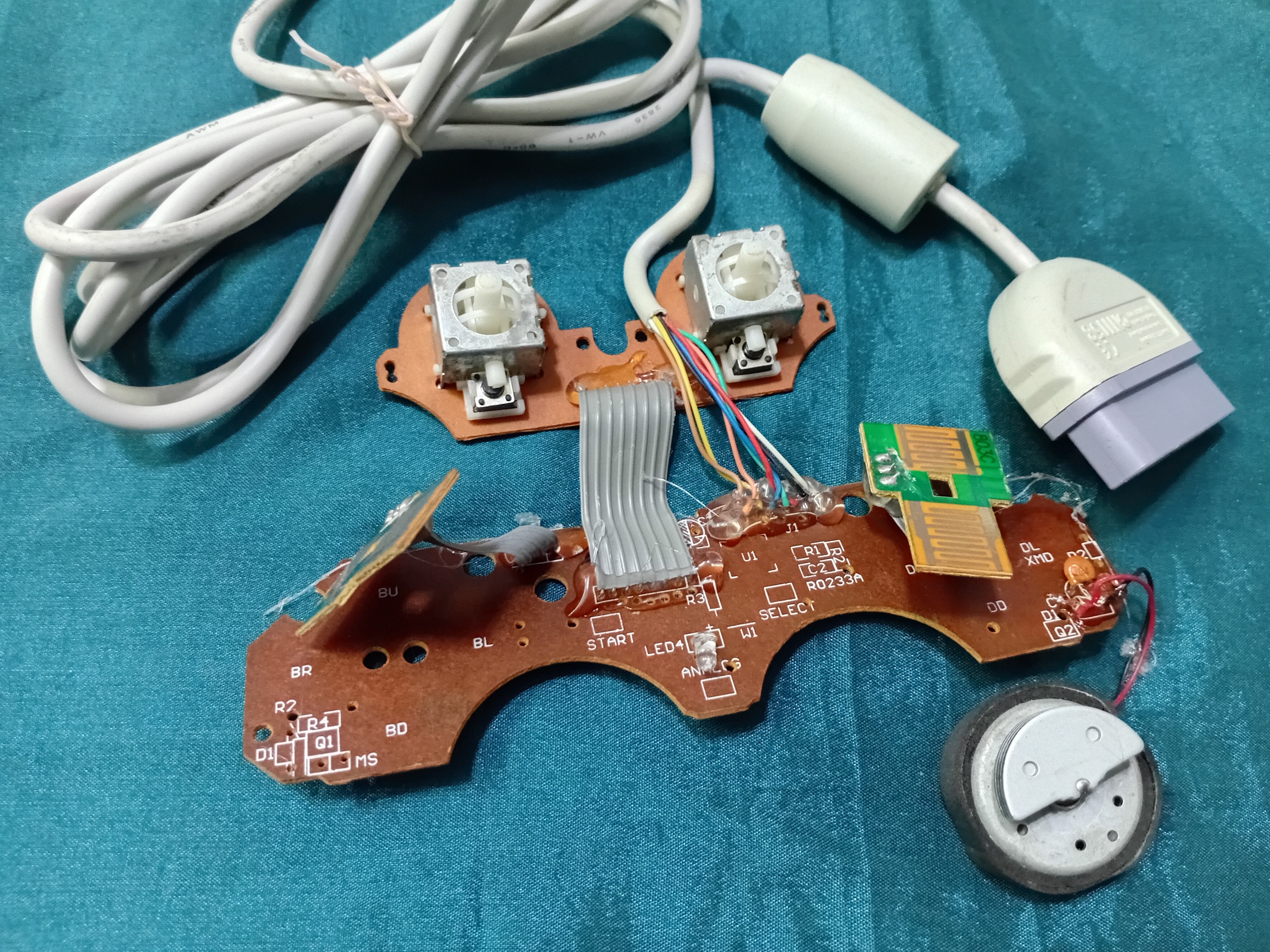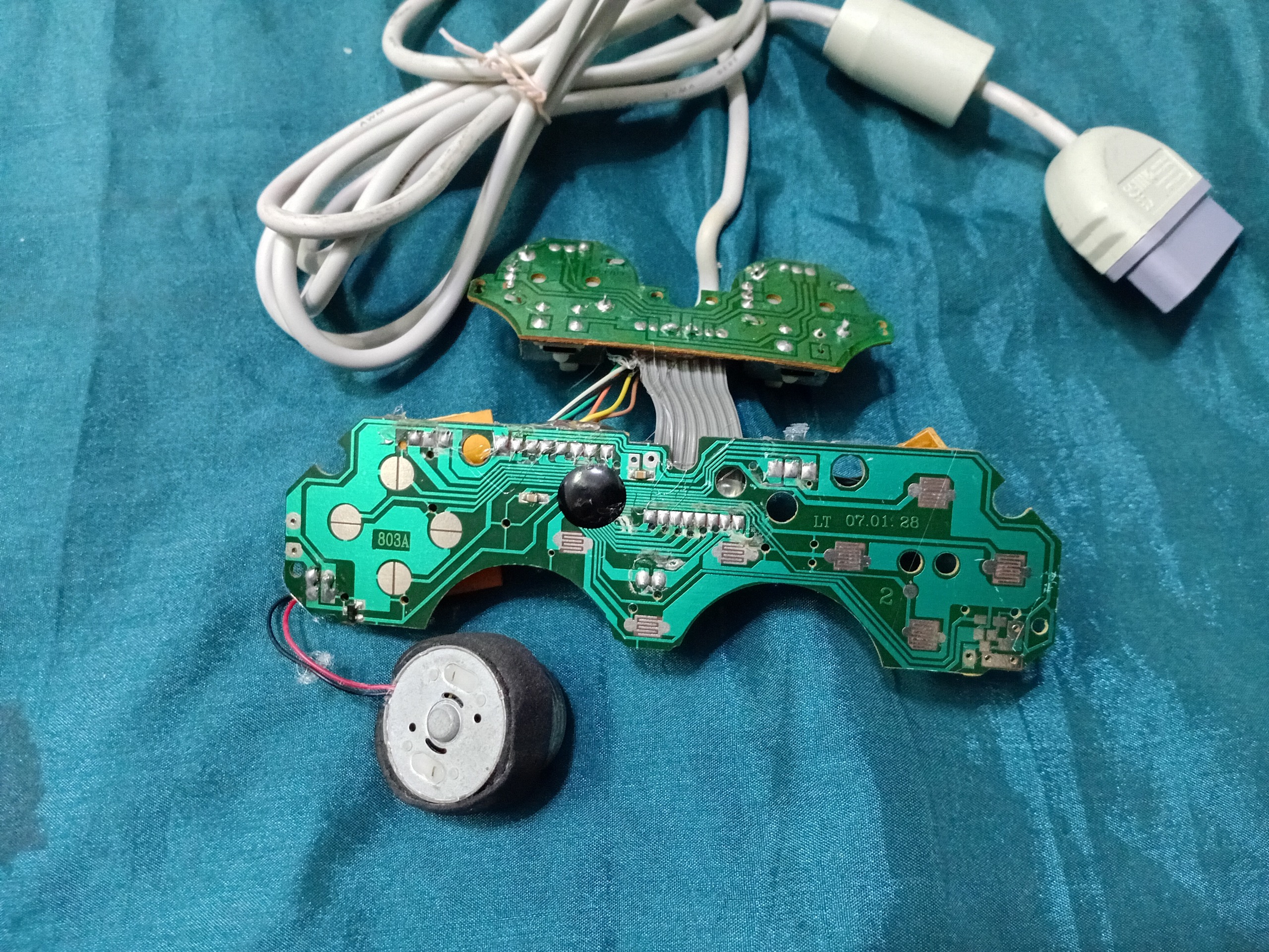 مدار متعلق به دسته سفید رنگ بدلی قدیم پلی استیشن یک . دسته آکبند بود قلبش اوراق و دفرمه شده بود مدار جدا کردم بقیه رو دور انداختم . مدار تست شده سالمه طبق تصاویر