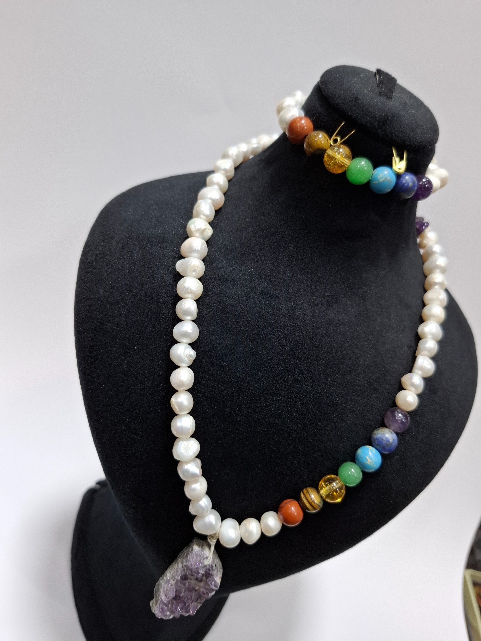 گردنبند دستبند مروارید پرورشی اصل و هفت مراکز بدن