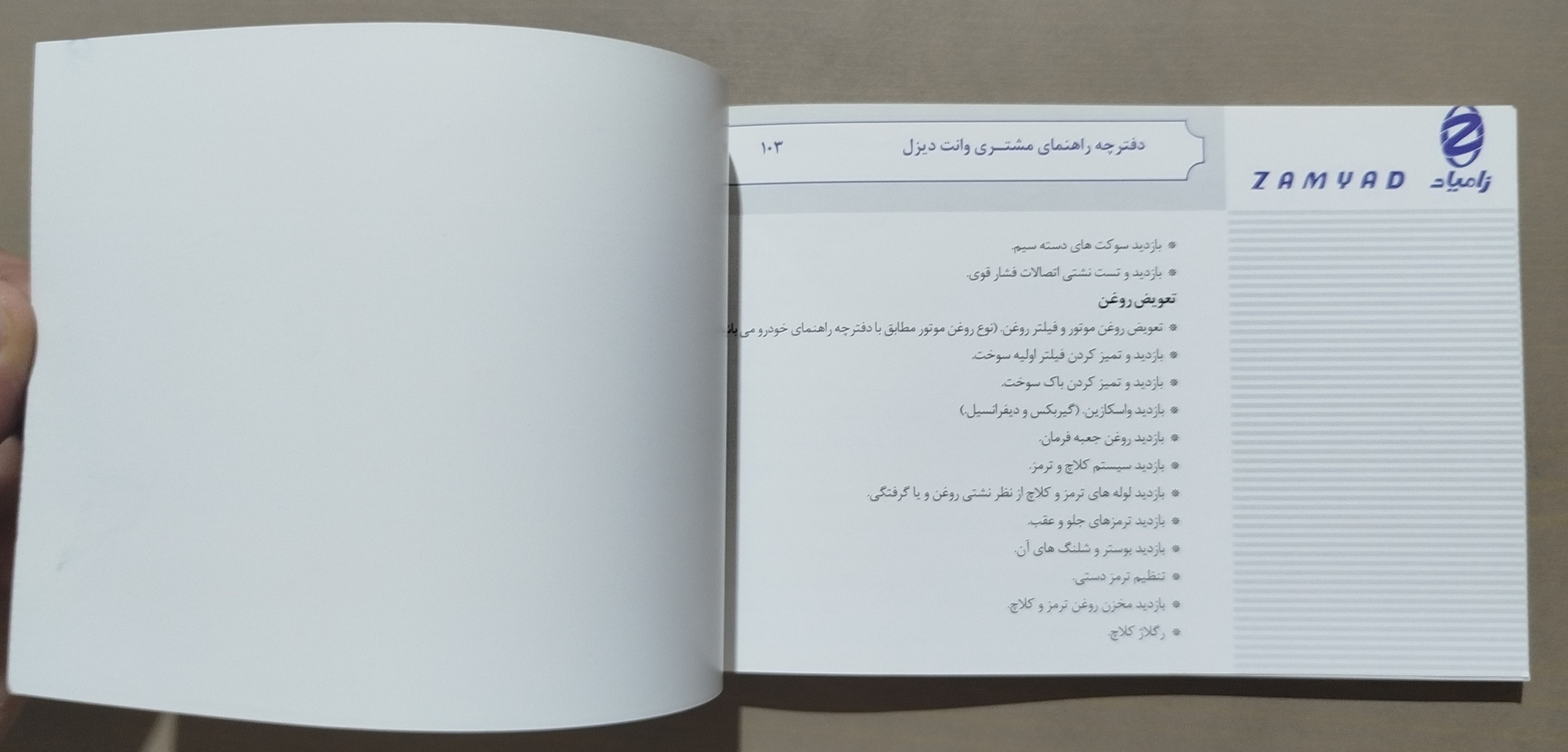دفترچه راهنمای مشتری و ضوابط گارانتی وانت دیزل زامیاد z28 nd