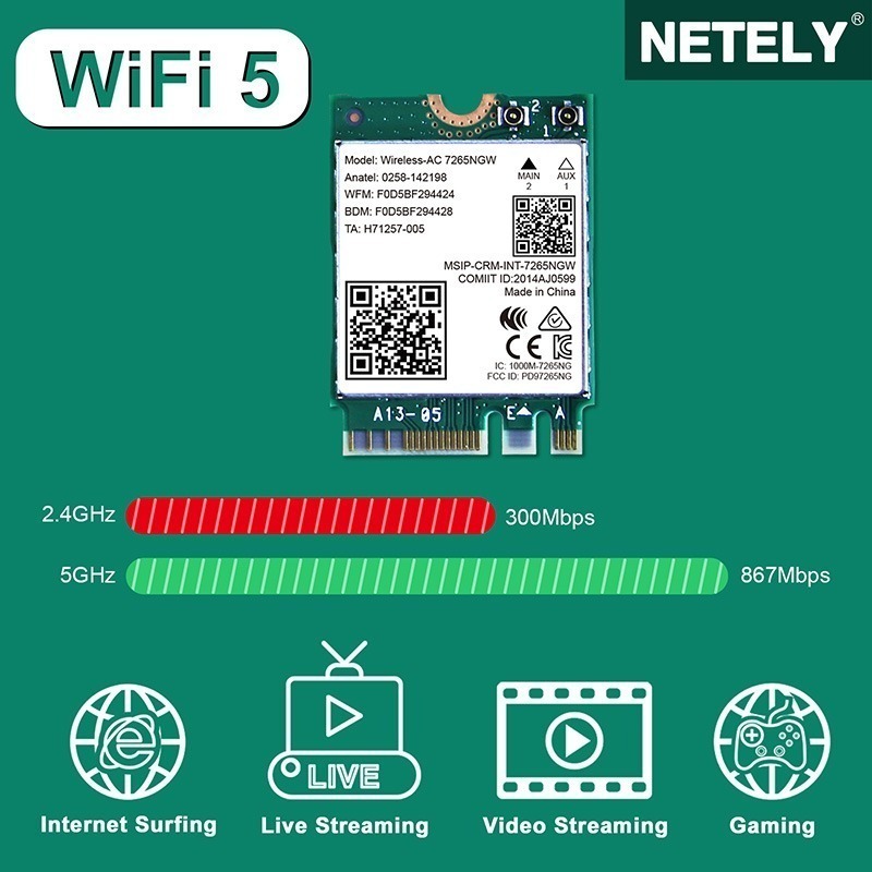 کارت وایرلس Intel Dual Band Wireless-AC 7265 M.2