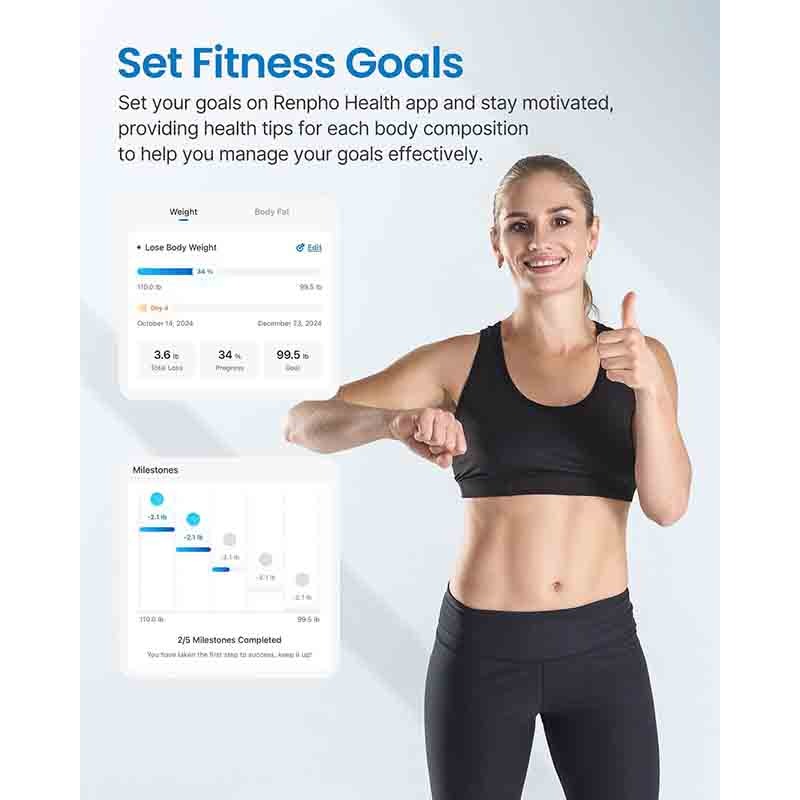 فناوری پوشش ITO برای دقت بالا با پوشش پیشرفته ITO ما، اندازهگیریهای دقیقتری با گامهای 0.2 پوند/0.05 دارد و برای همه سایزهای پا مناسب است. پیشرفت خود را روزانه، هفتگی یا ماهانه از طریق برنامه Renpho Health پیگیری کنید، که تمام موارد و موارد دیگر را در نمودارها