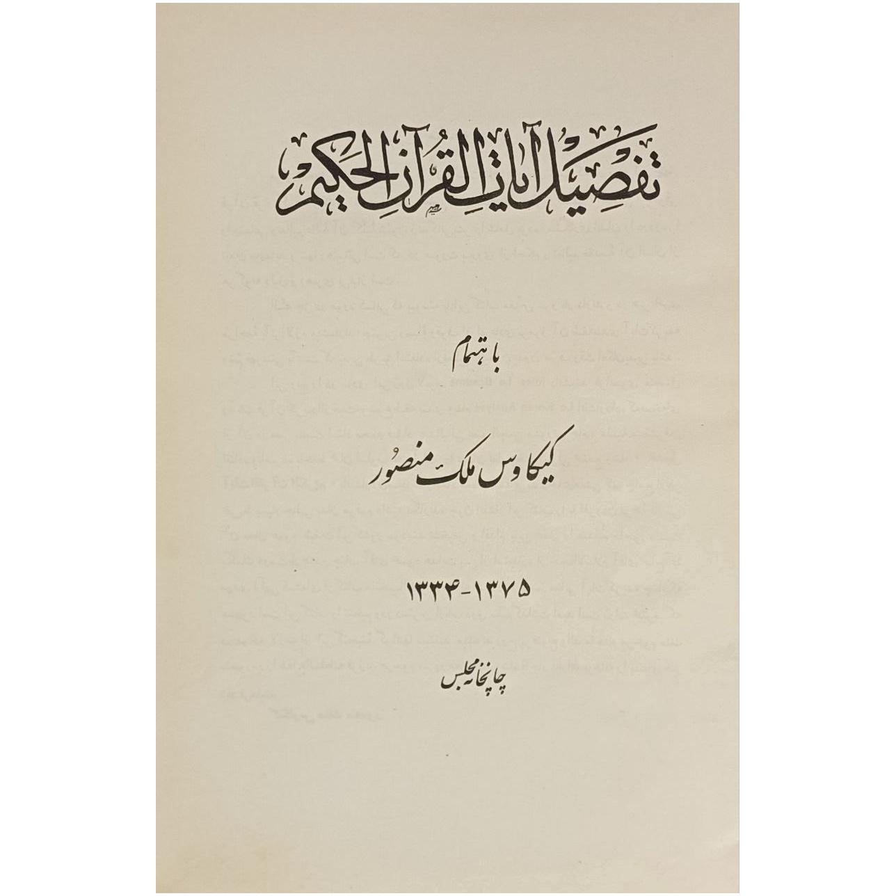 تفصیل آیات القرآن الحکیم ، به اهتمام کیکاوس ملک منصور ، چاپخانه مجلس ، چاپ اول 1334