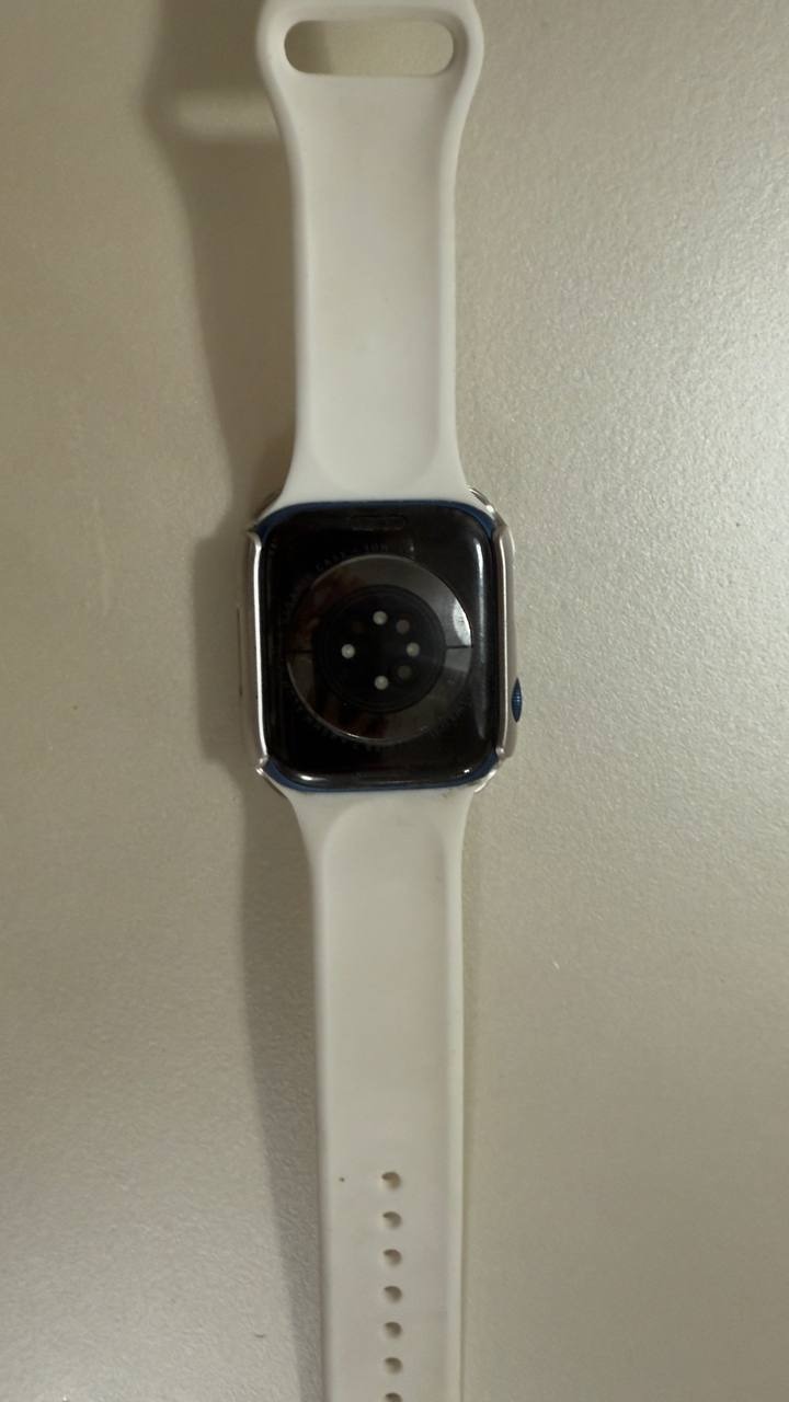اپل واچ سری 7 میباشد سایز 45 قیمت معقول گذاشتم نکاه کنید باتری 85 رو میزارن 14 تومن من چون پول لازمم ارزون گذاشتم رنگ سرمه ای با جعبه و کابل شارژر فابریک.