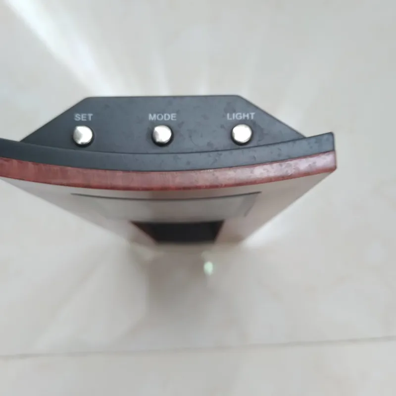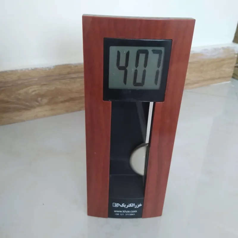 ساعت دیجیتال رومیزی پاندول دار رنگ قهوه ای طرح چوب زیبا و شکیل با صفحه نمایش گر اعداد بزرگ و خوانا کارکرد عالی