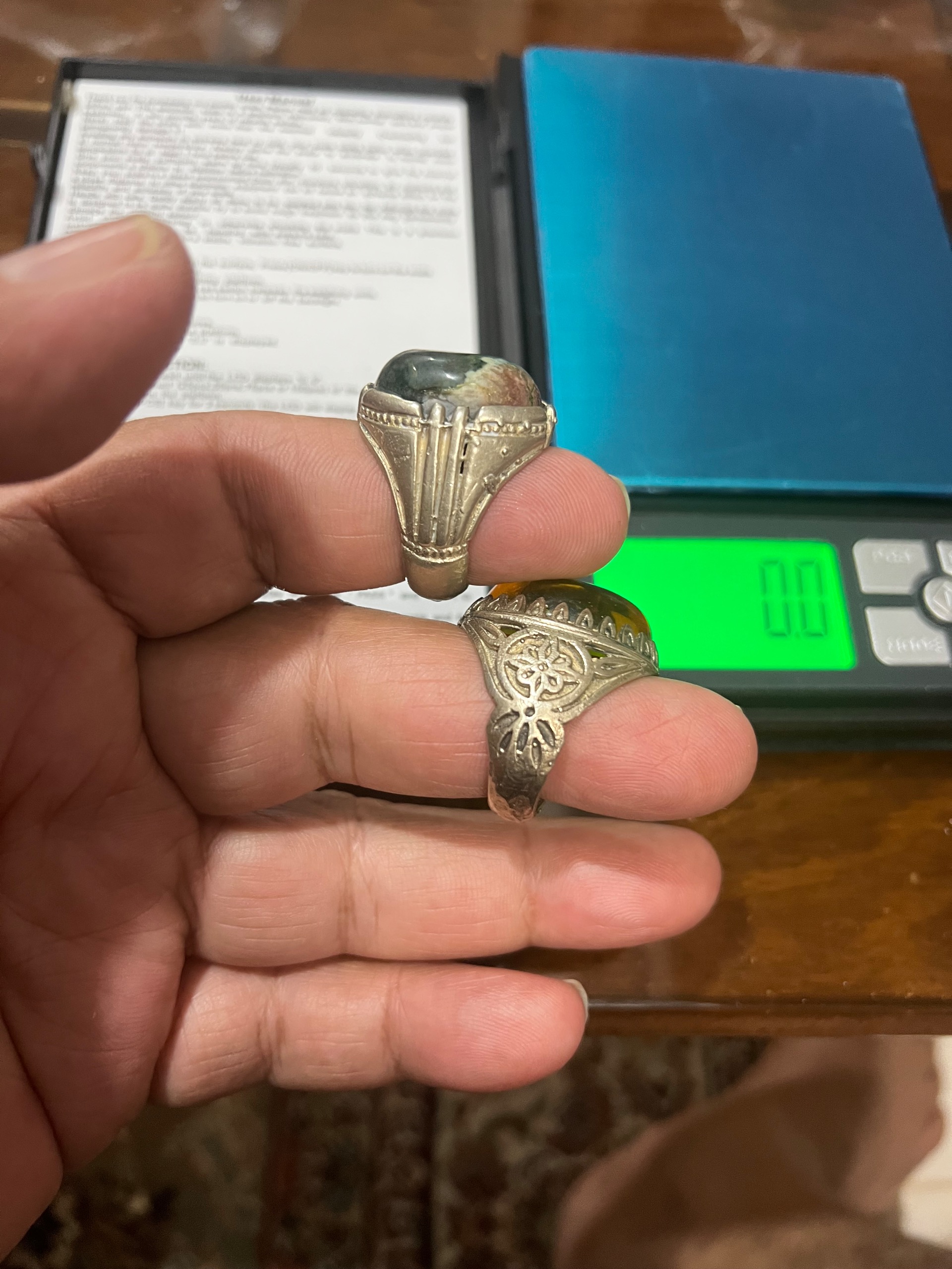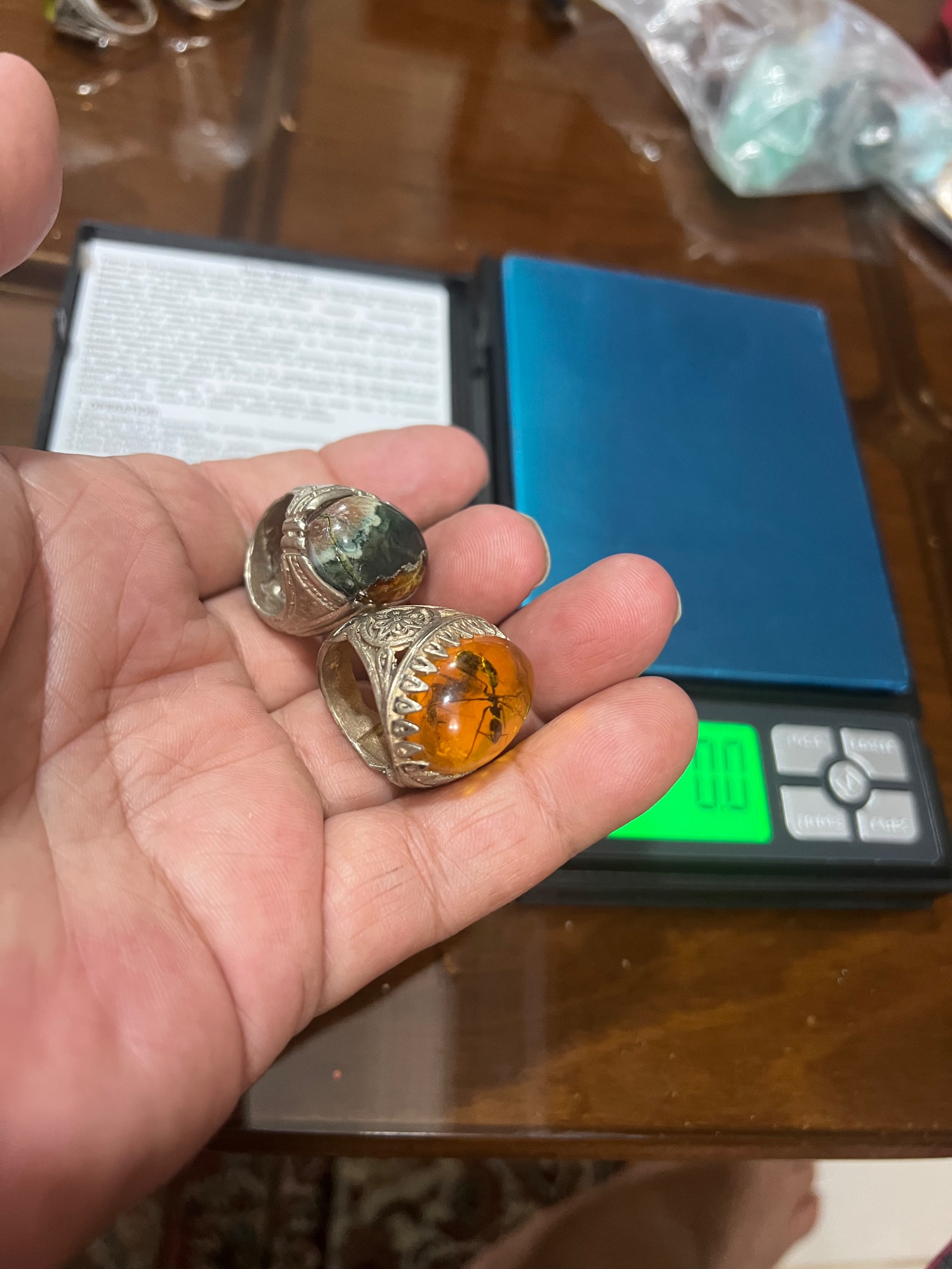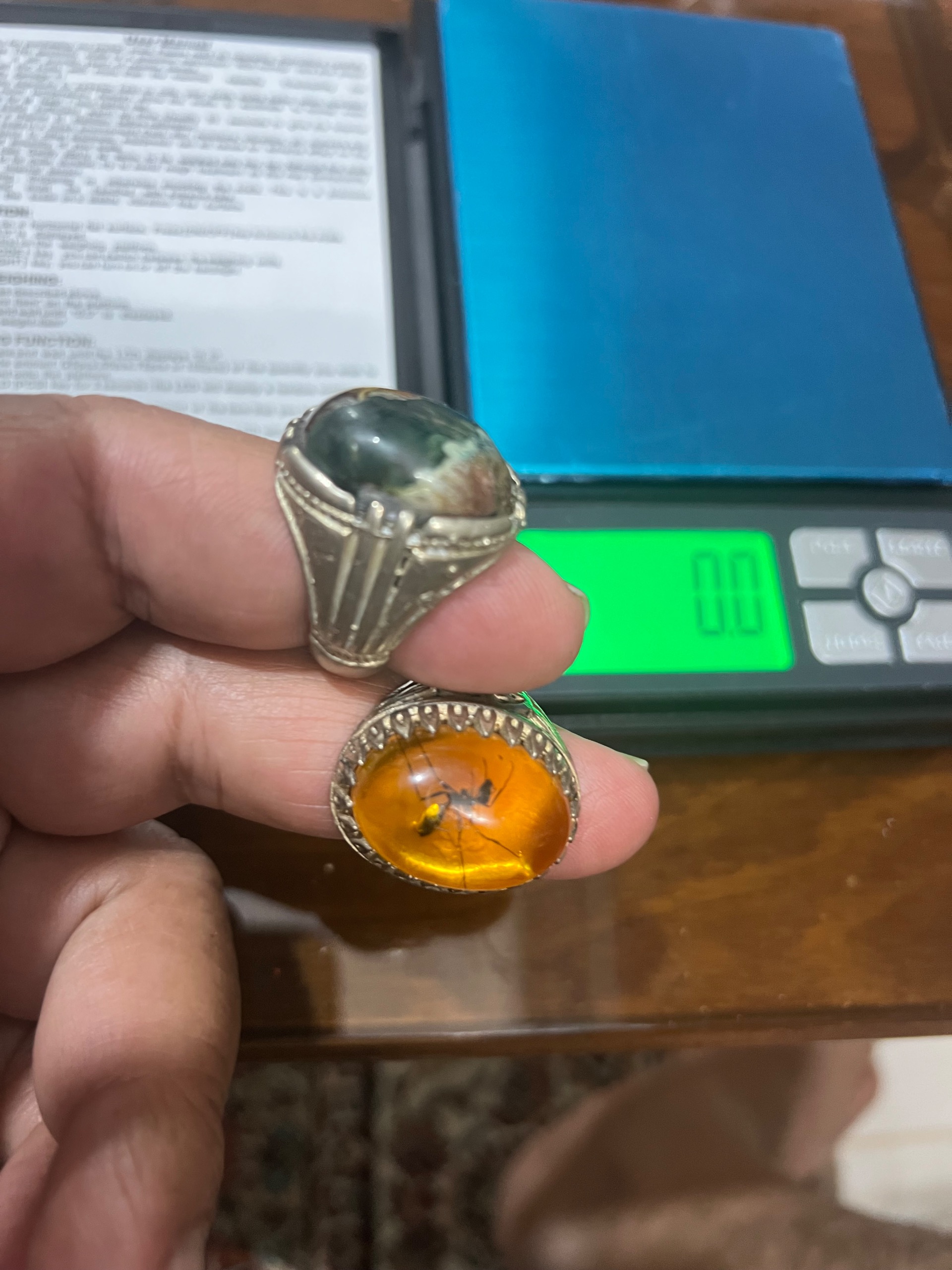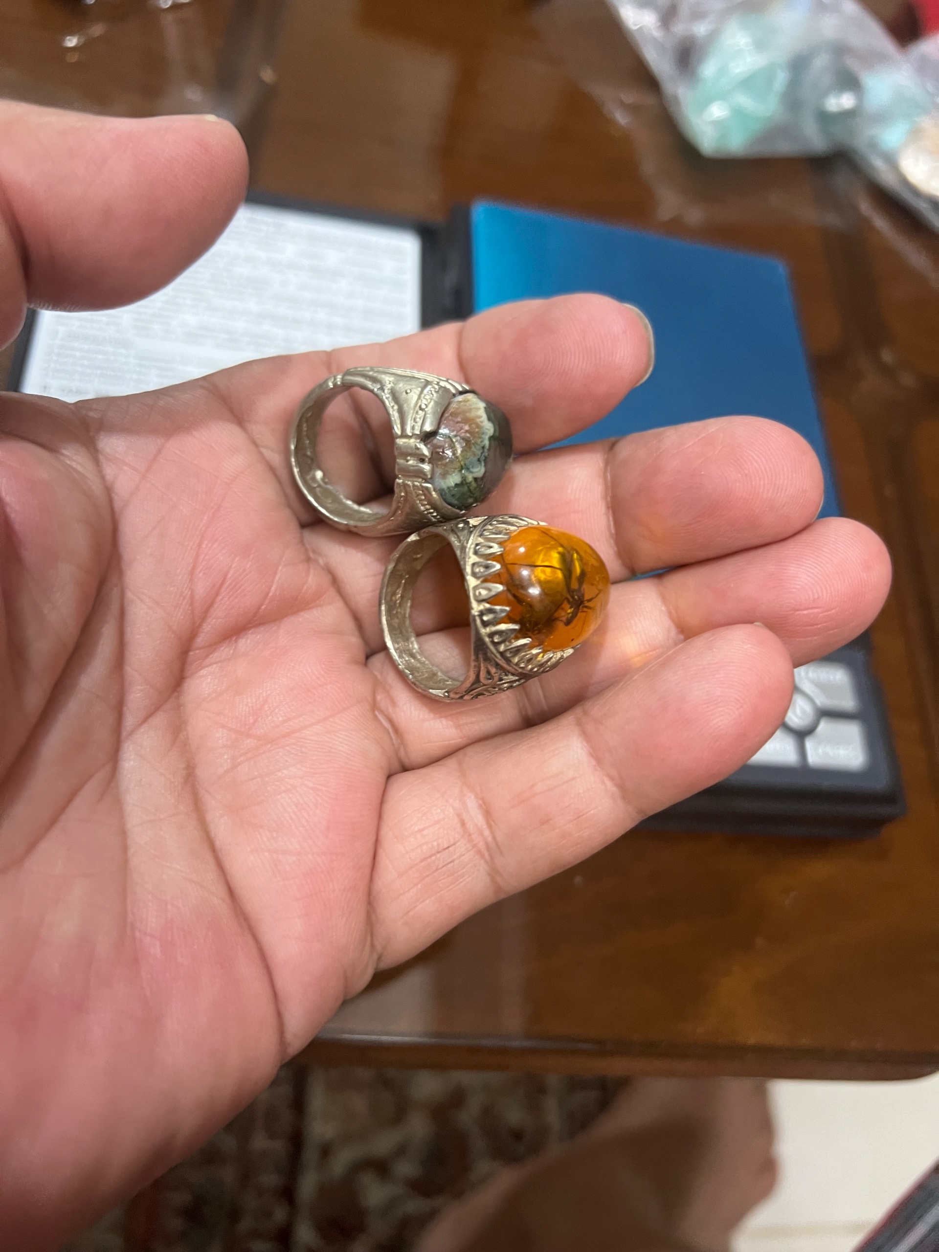 تعدا دو عدد انگشتر شامل بحر السطان و کهربا غیر اصل و سنیتیک و رکاب آلیاژ بدلیجات