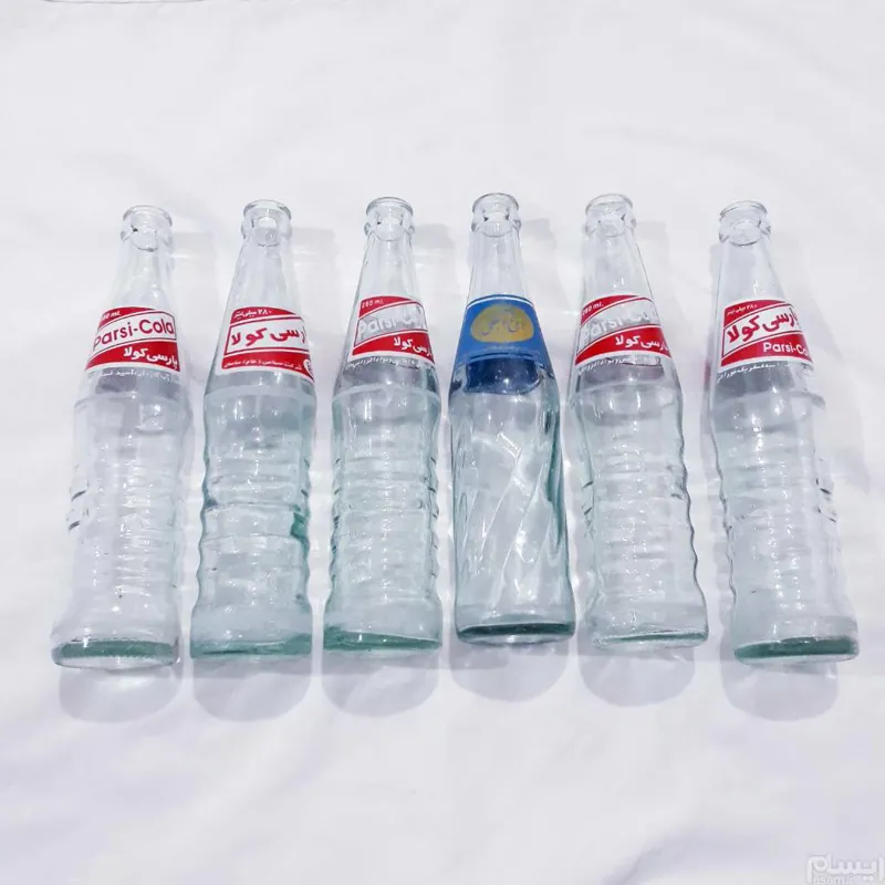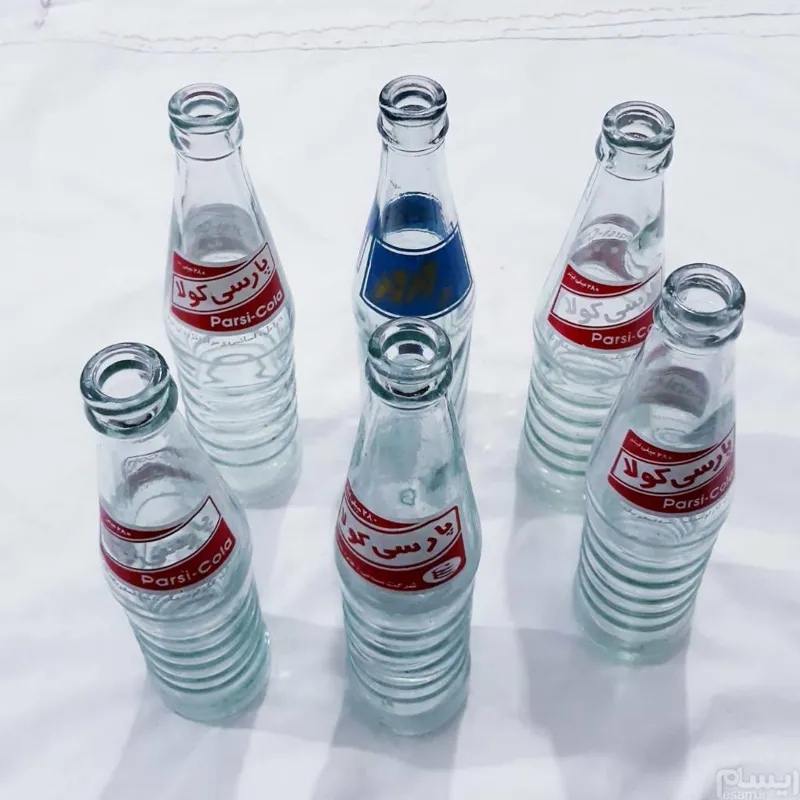 5عدد بطری نوشابه پارسی کولا 1 عدد دوغ آبعلی زمزم سالم تمیز فقط یک عدد ازبطریها قسمت دهانه پریده ولی باچسب محکم شده .