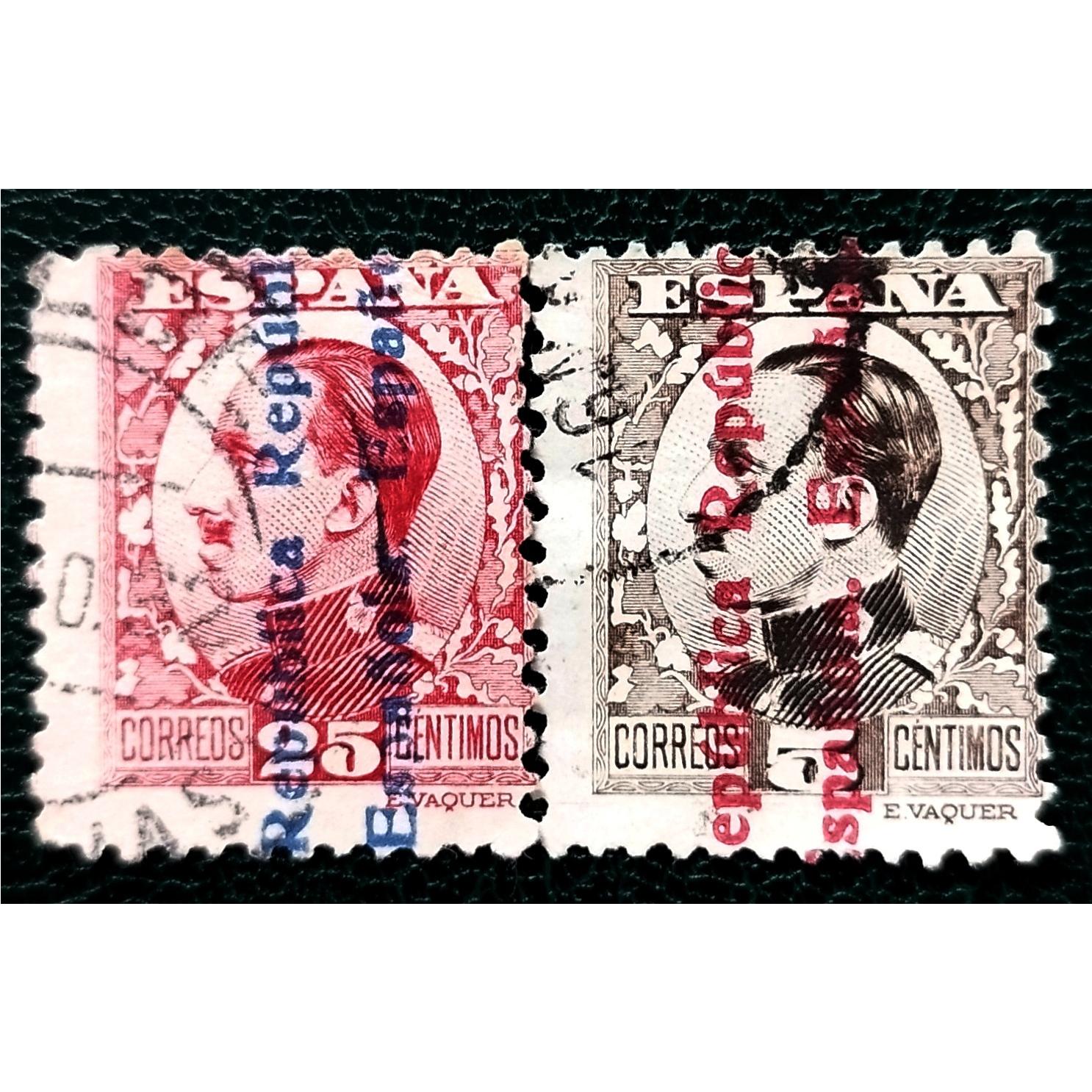 دو تمبر سورشارژ پادشاه اسپانیا (سال 1931)