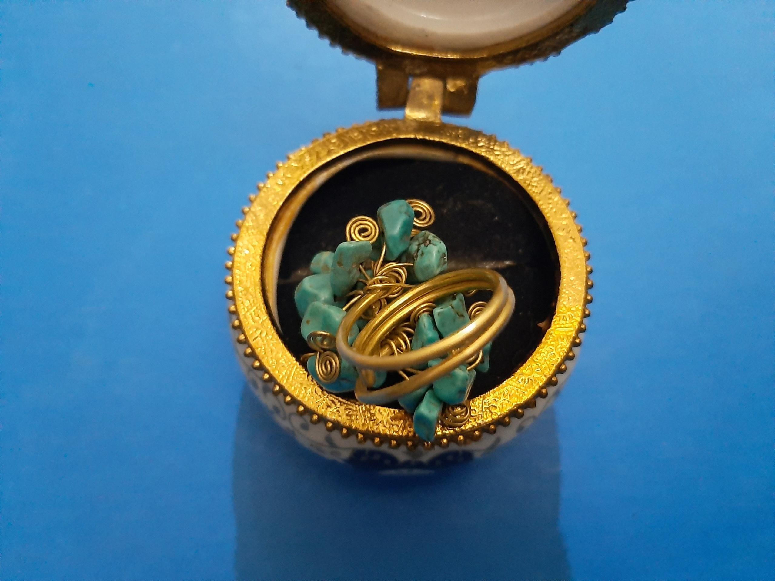 انگشتر برنجی و فیروزه ( فیروزه مصنوعی ) . سایز انگشتر قابل تنظیم است .