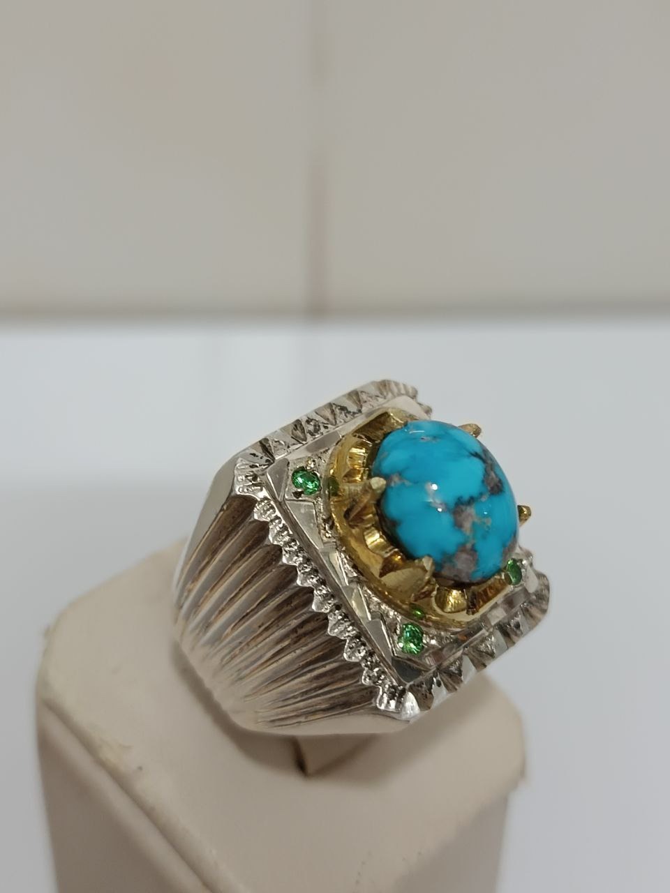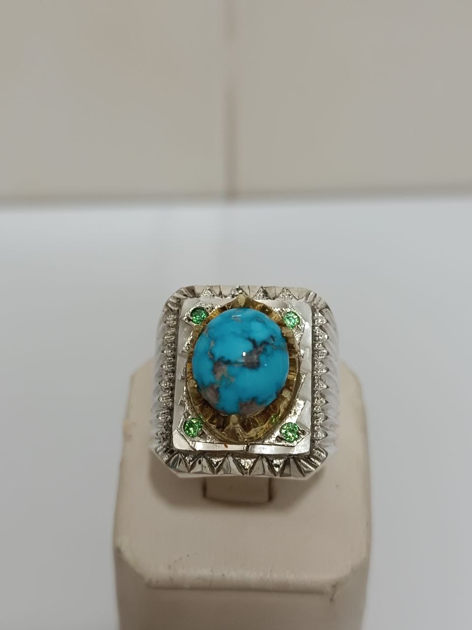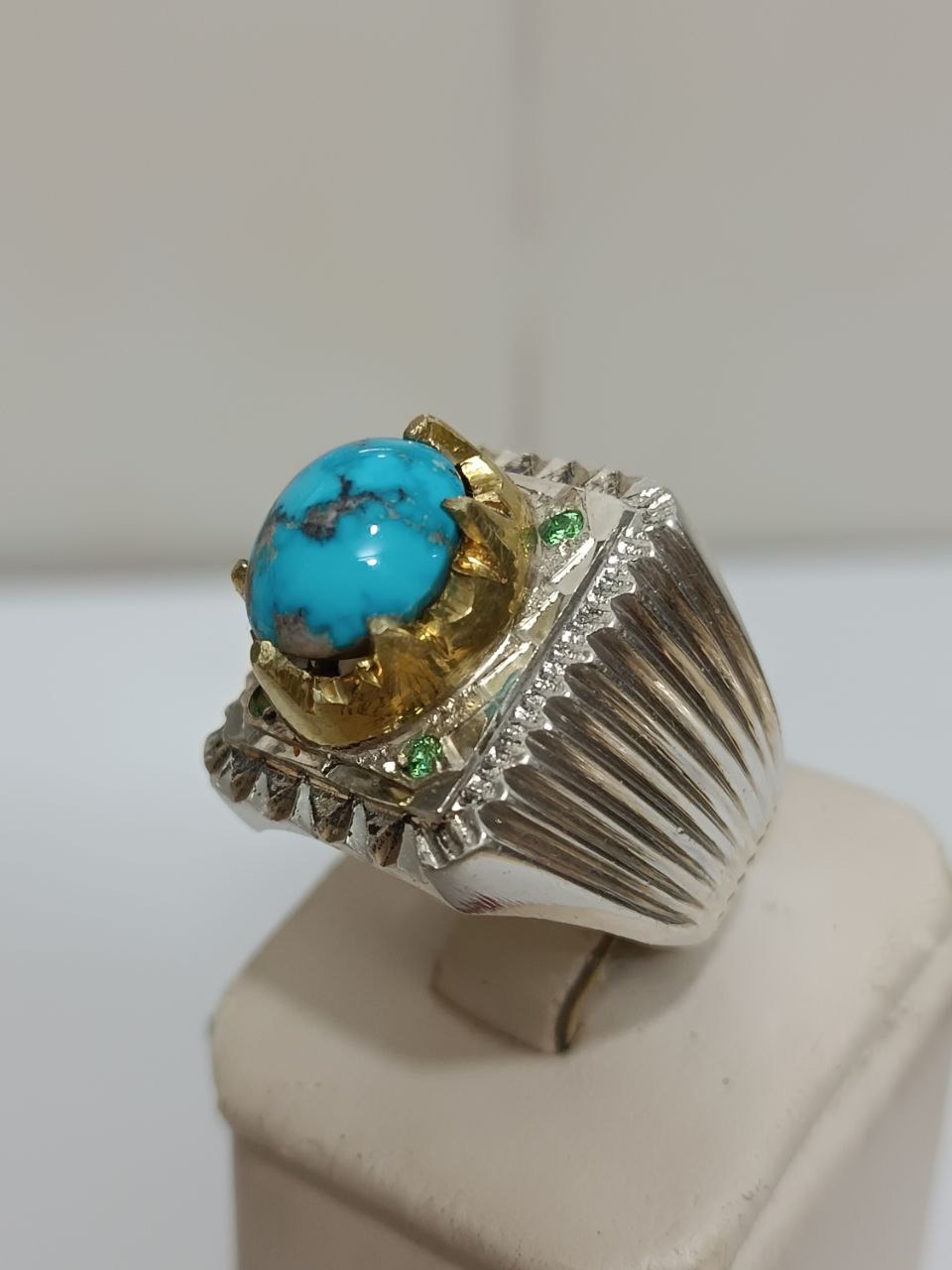 رکاب نقره 925 نگین سنگ فیروزه نیشابور