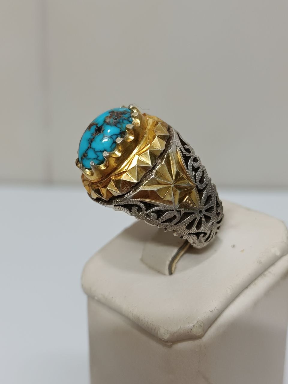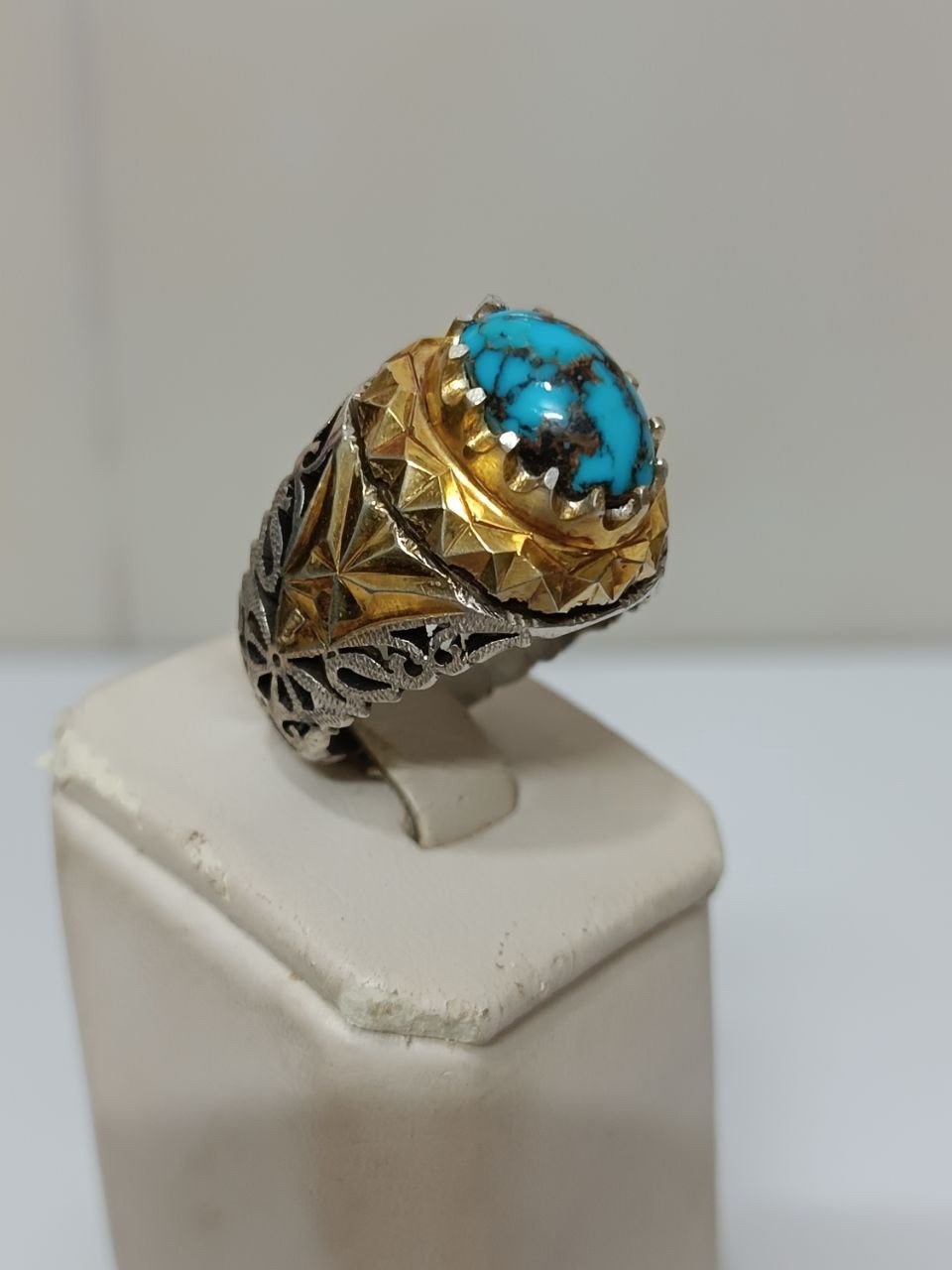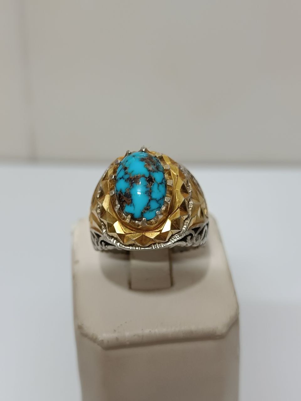 رکاب تمام نقره 925 آبکاری شده نگین سنگ فیروزه نیشابور
