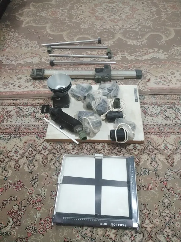 دستگاه نورپردازی عکاسی کامل، ساخت کشور هلند همراه با تخته مندرج شده برای عکاسی از تصاویر، قابلیت نصب دوربین های آنالوگ ودیجیتال،،. بدلیل سنگین وزن بودن کالا مرجوعی پذیرفته نمیشود دستگاه با بسته بندی حساس ارسال میگردد