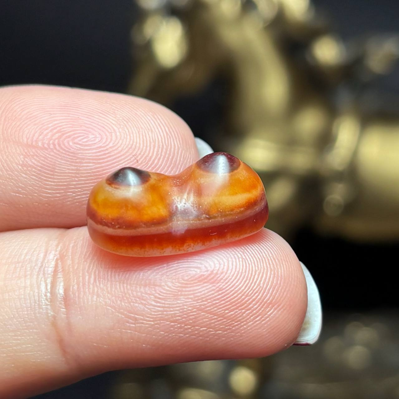 نگین سنگ عقیق سه پوست باباقوری معدنی تراش کهنه دو کوهانه