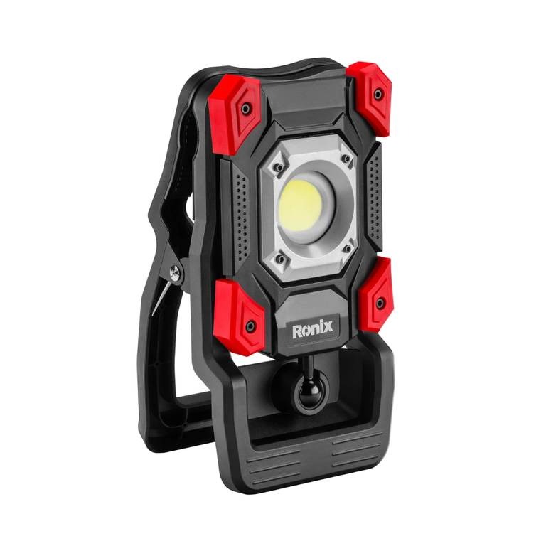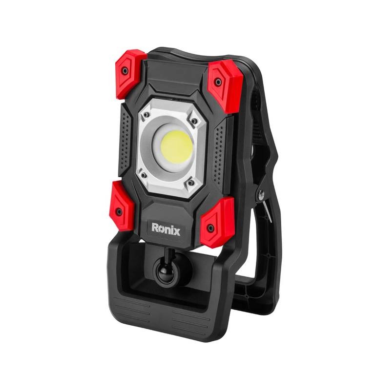 منبع تغذیه این نورافکن رونیکس باتری لیتیوم یونی با ظرفیت 4400 میلیآمپرساعت و ولتاژ 3.7 ولت، است. این نورافکن RH-4211 به راحتی روی میز یا سطوح مختلف وصل میشود.
