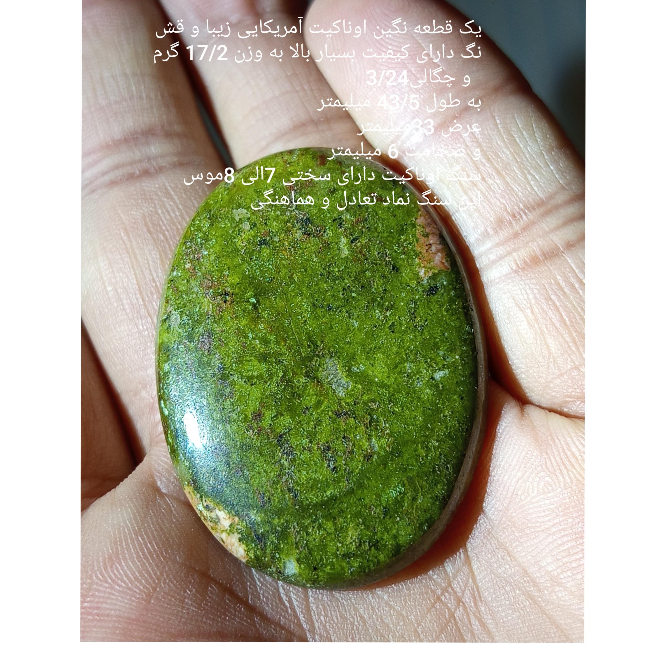 یک قطعه نگین اوناکیت آمریکایی به وزن دقیق 17/2 گرم