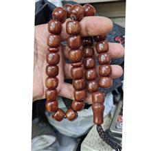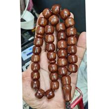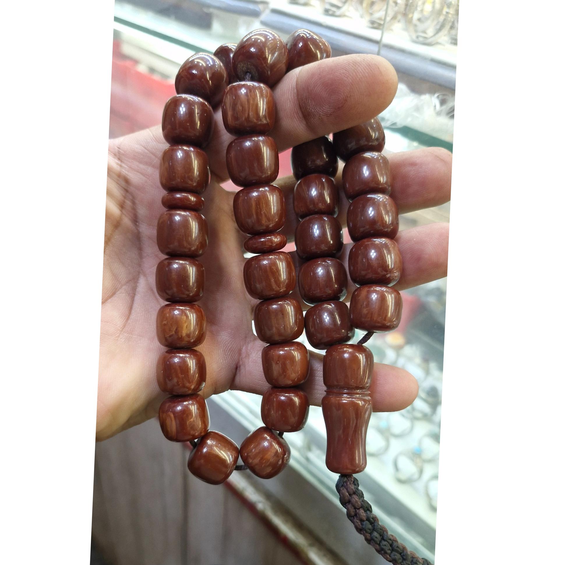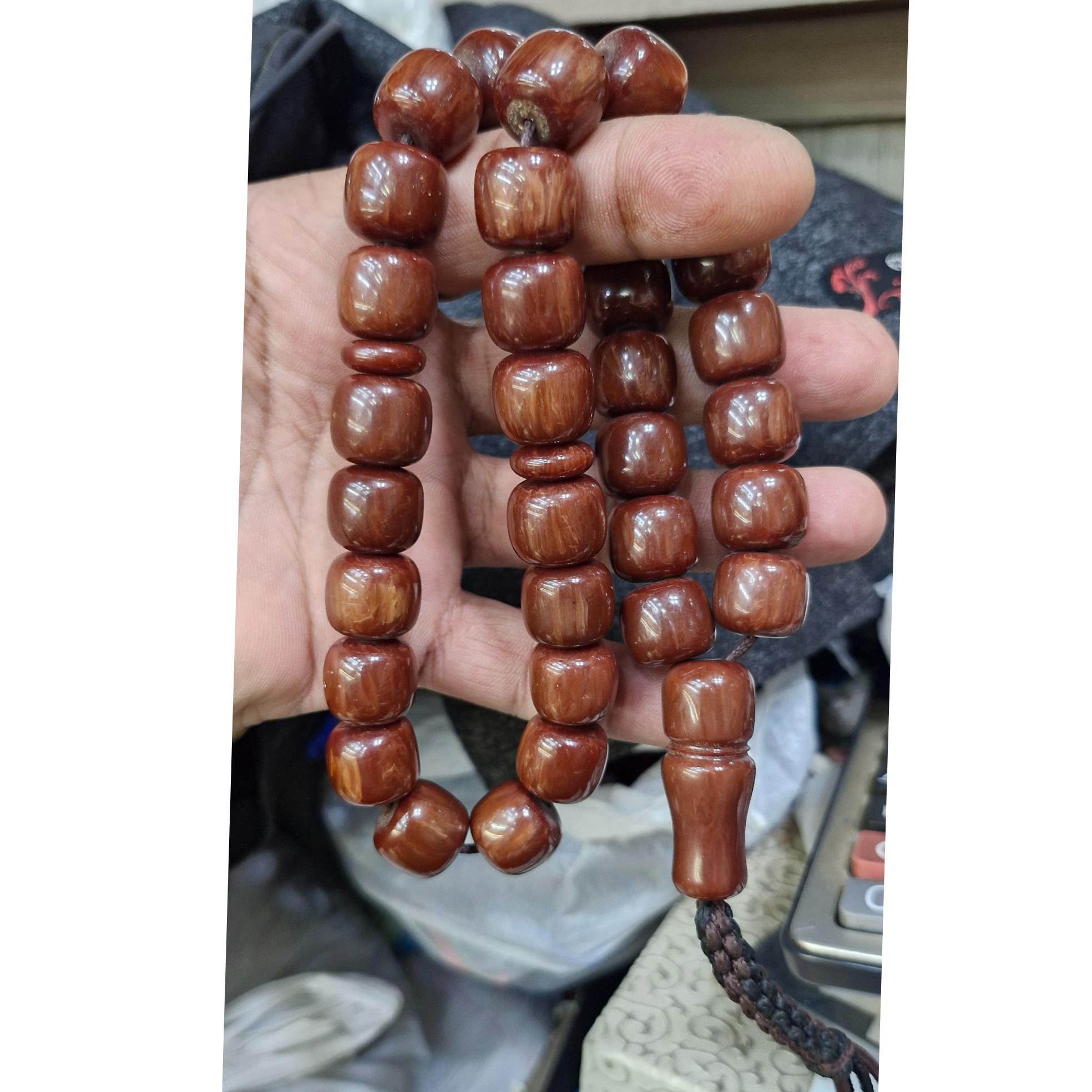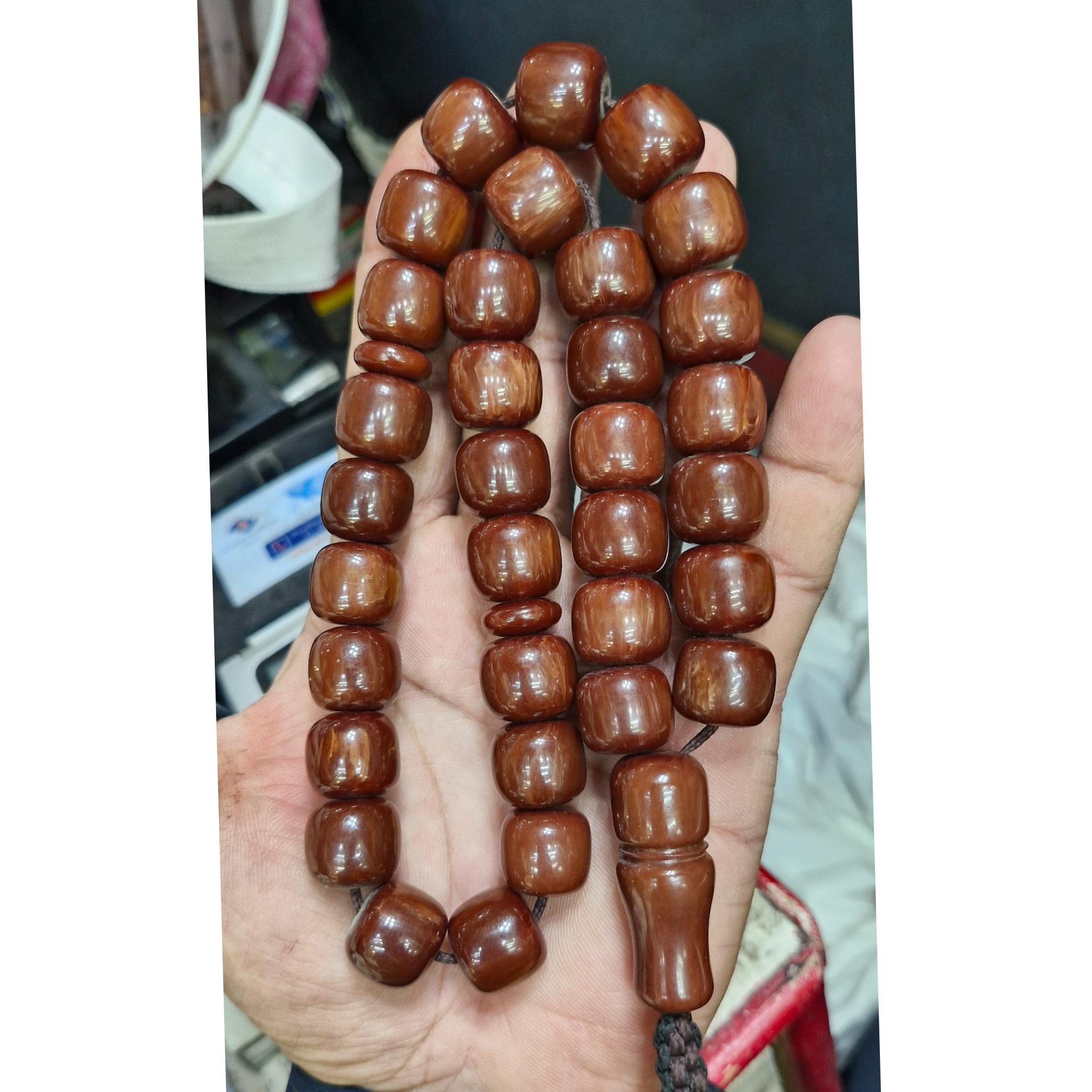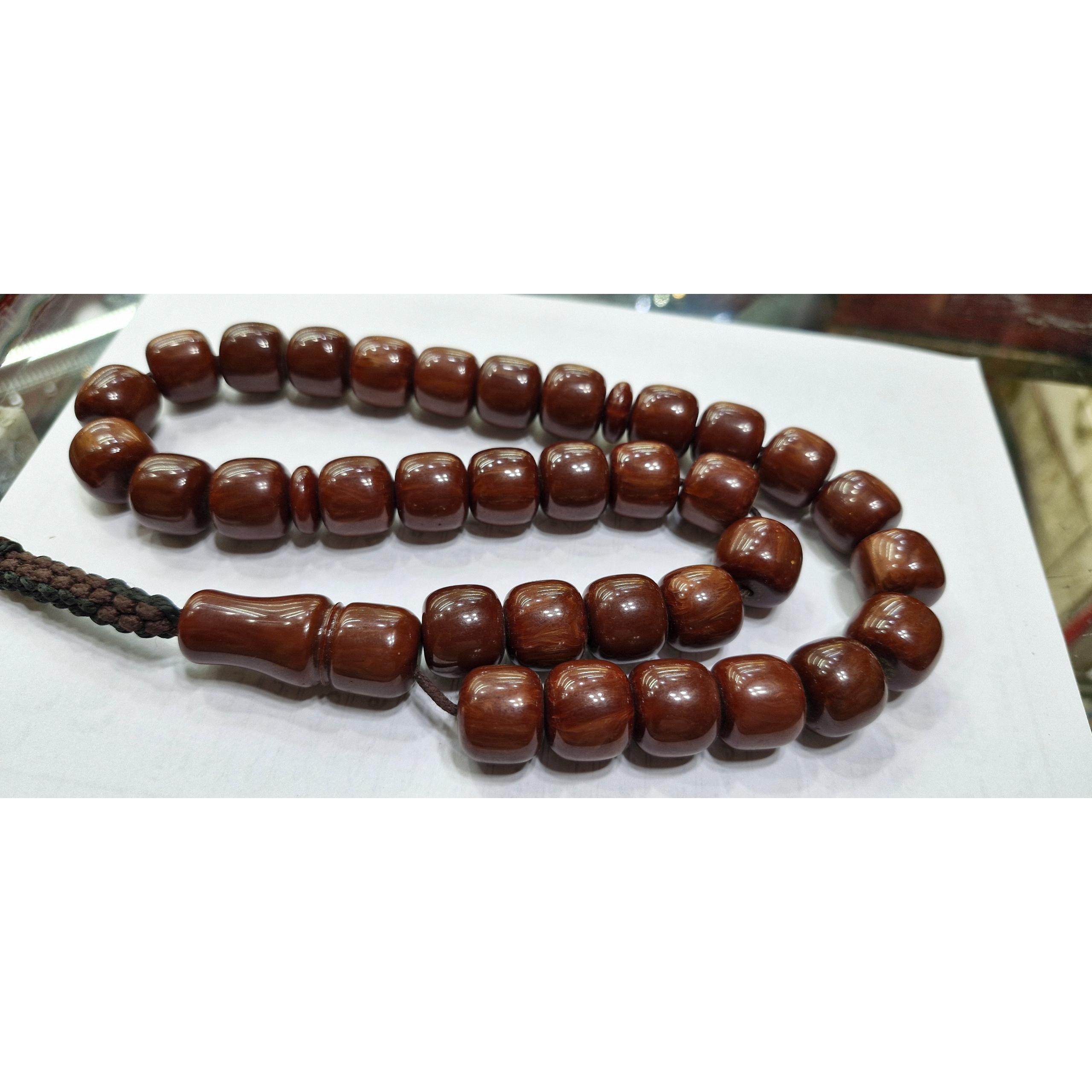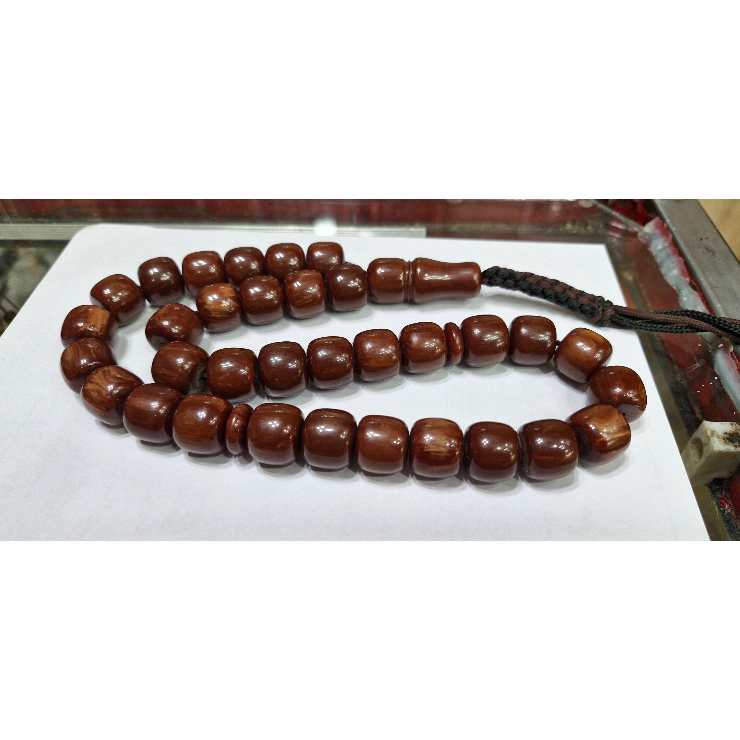 تسبیح سندلوس سی و سه دانه رگه دار شمش آلمان. شکلاتی وزن106 گرم طول 28 سانت تراش حبه ای