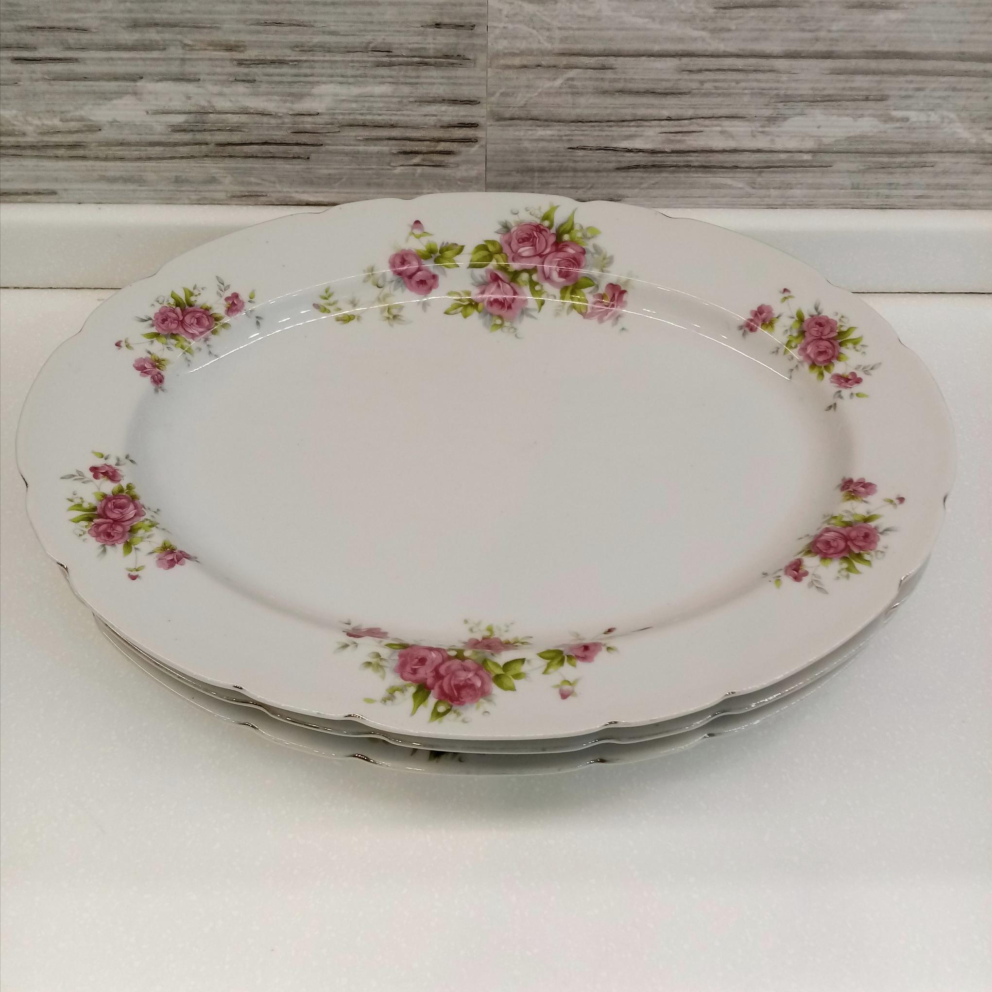 تعداد 3 عدد دیس گلسرخی kpm بازرگانی مسعود به طول 36 سانتیمتر و کاملا سالم.هر3 دیس مشابه هم وبا گلها ومارک یکسان میباشند. قیمت درج شده برای 1عدد از 3عدد دیس موجود است.