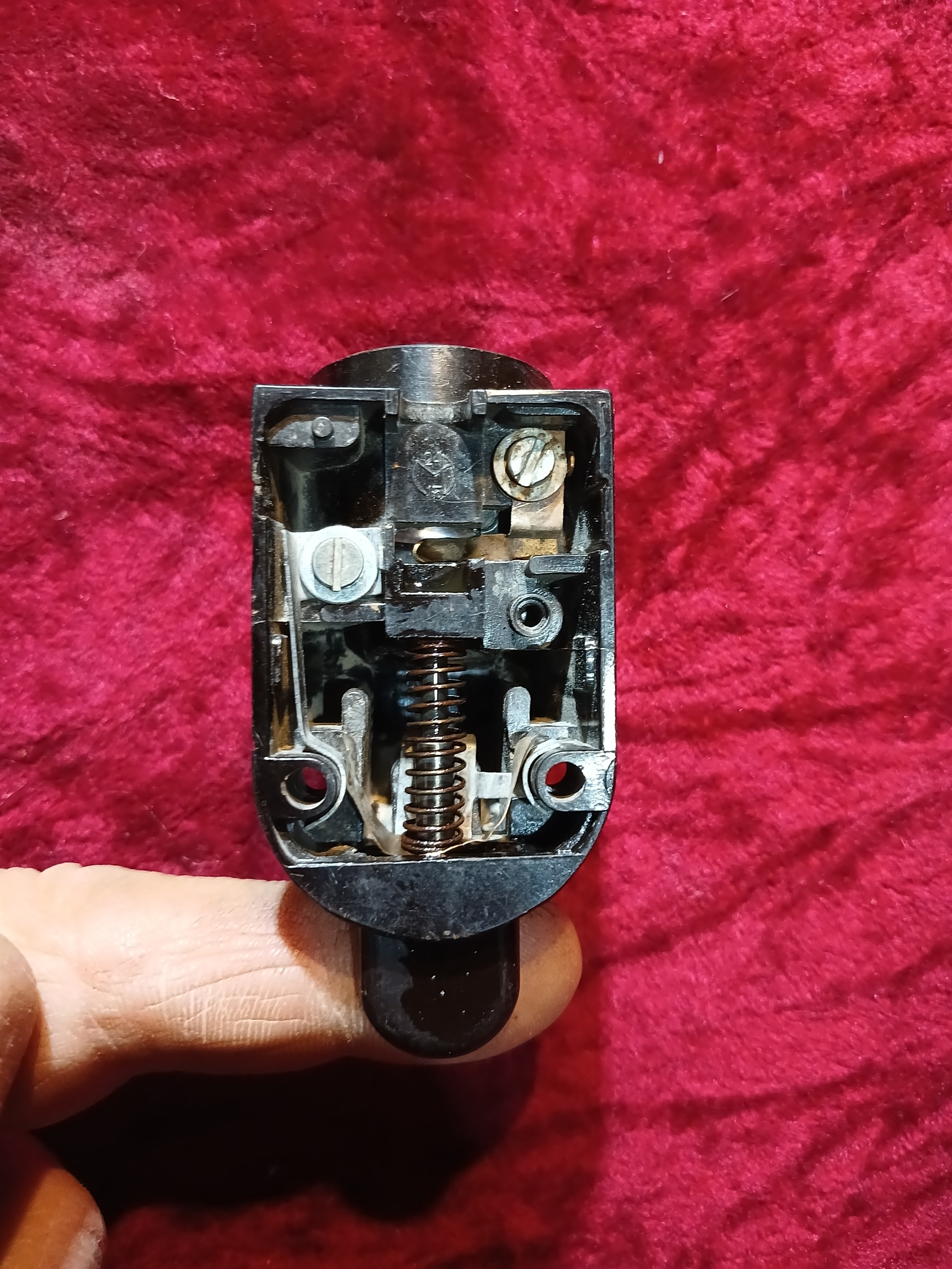 سر پیچ (بادرم) برق خارجی قدیمی سالم و بدون ایراد قابل استفاده کلکسیونی مال زمان پهلوی با کلید قطع و وصل بصورت فشاری در انتهای بادرم.