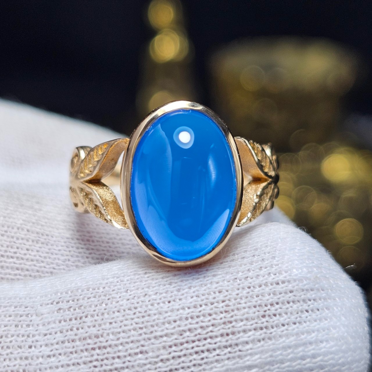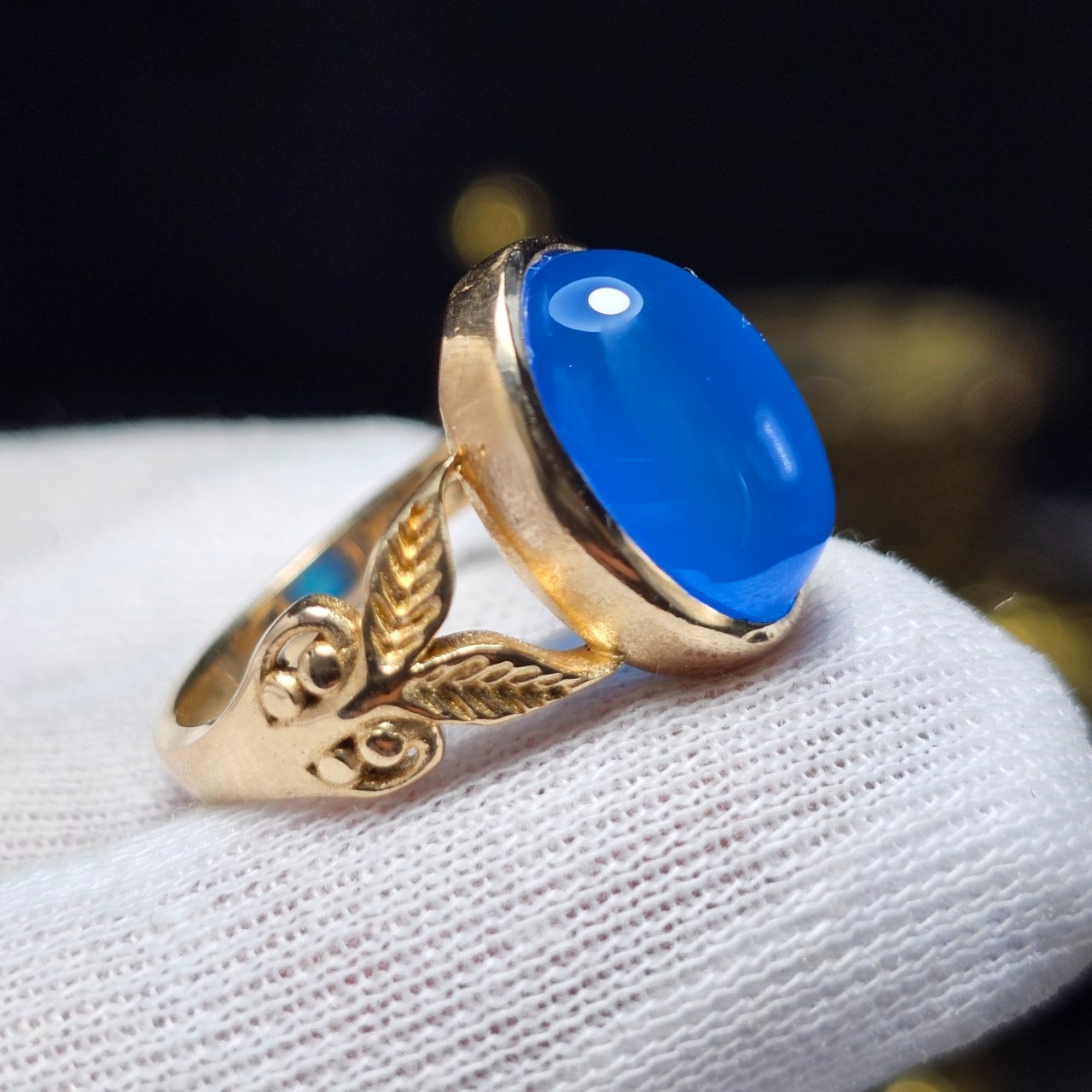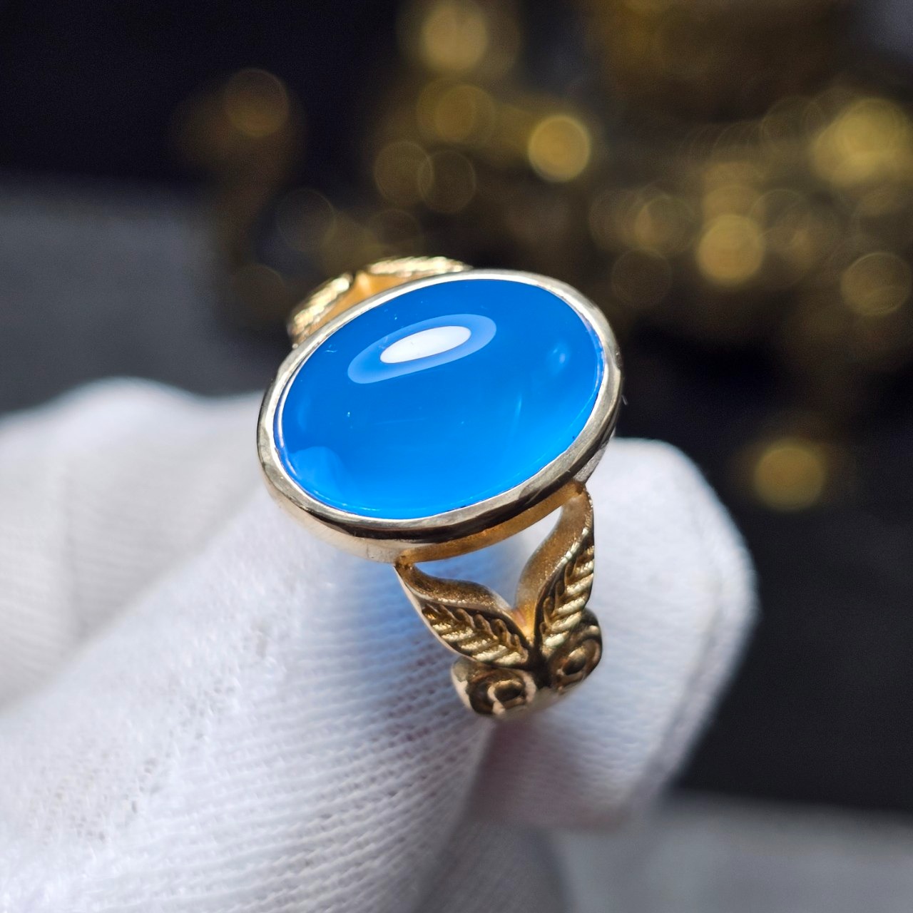 انگشتر طلا روس با سنگ عقیق آبی معدنی کد 37070