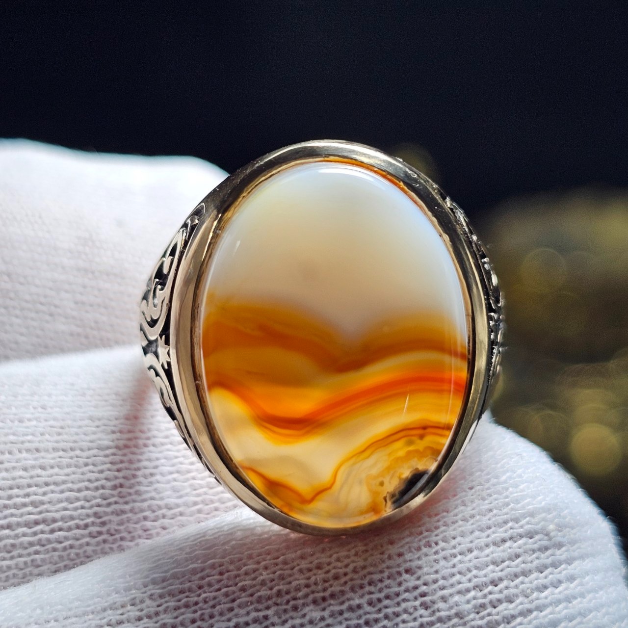 انگشتر طلا روس با سنگ عقیق سلیمانی معدنی خراسانی کد 37066