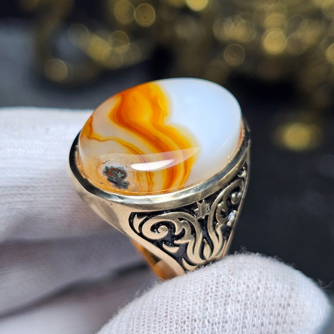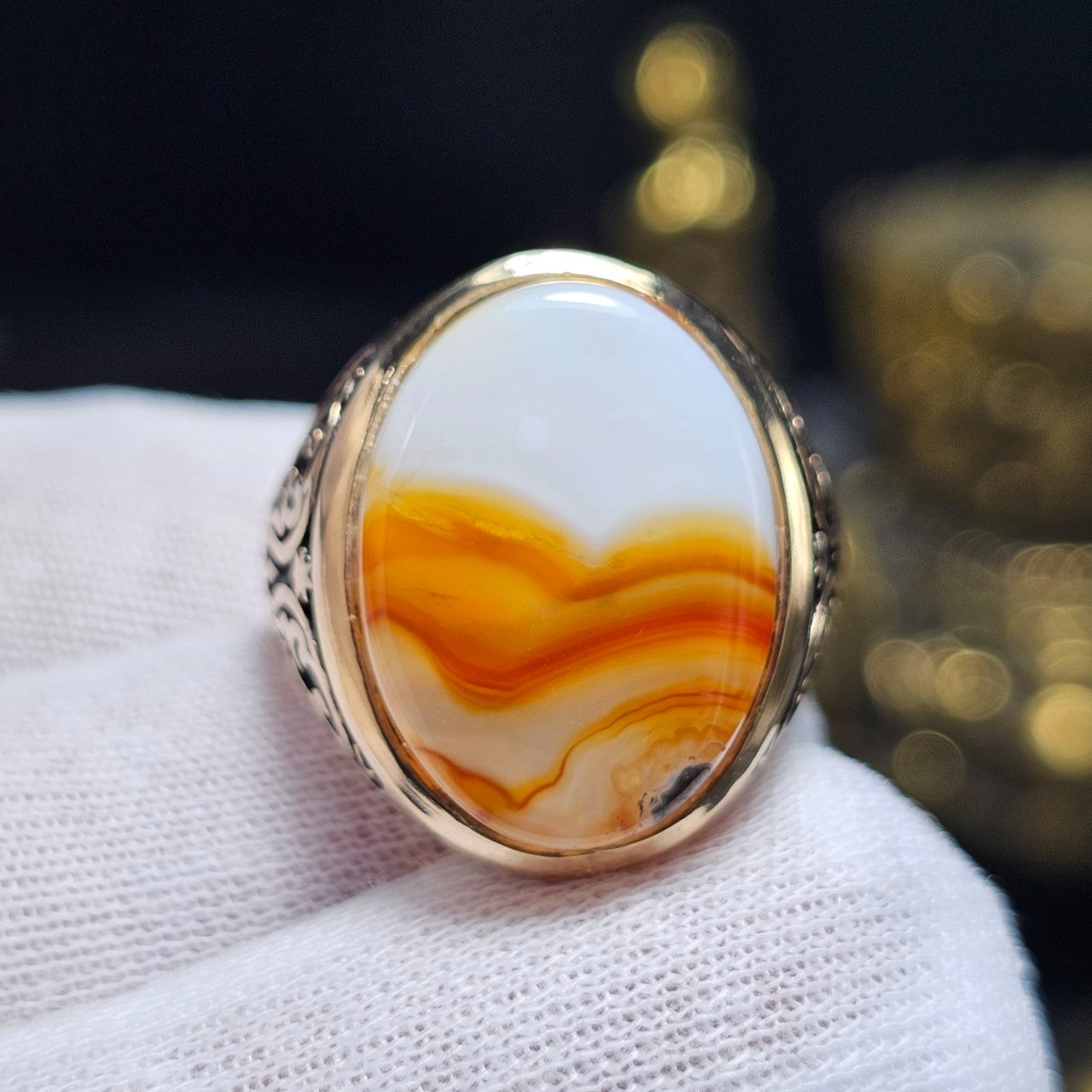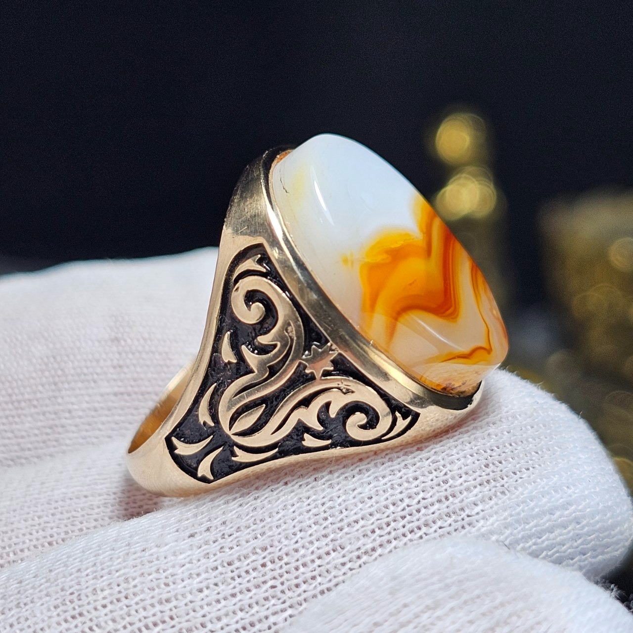 انگشتر طلا روس سنگ عقیق سلیمانی خراسانی کد 37066