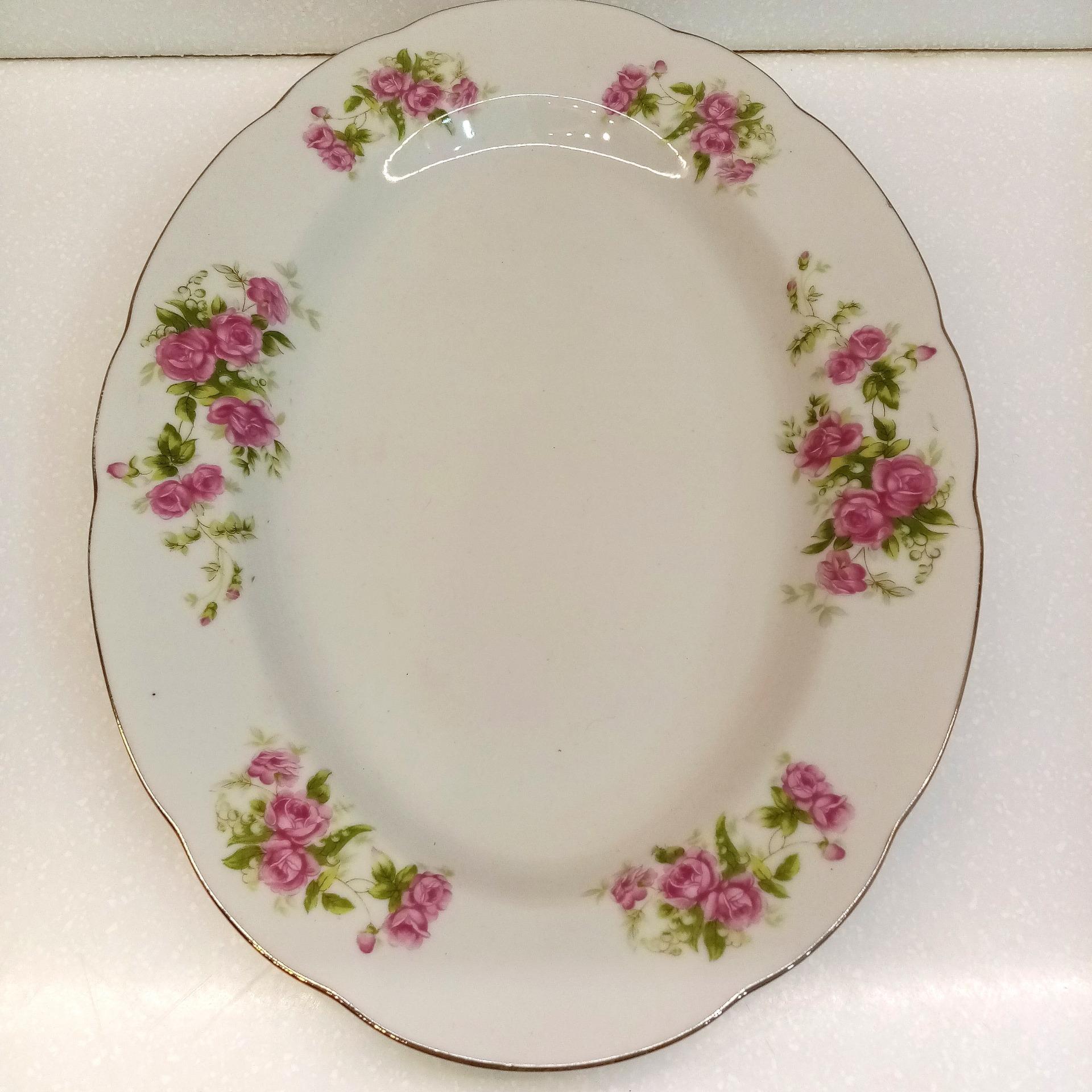 1عدد دیس گلسرخی قدیمی وبسیار زیبای گلسرخی ژاپنی مارک TONO به طول 32 سانتیمتر وکاملا سالم ودرحدنو با لبه طلایی.