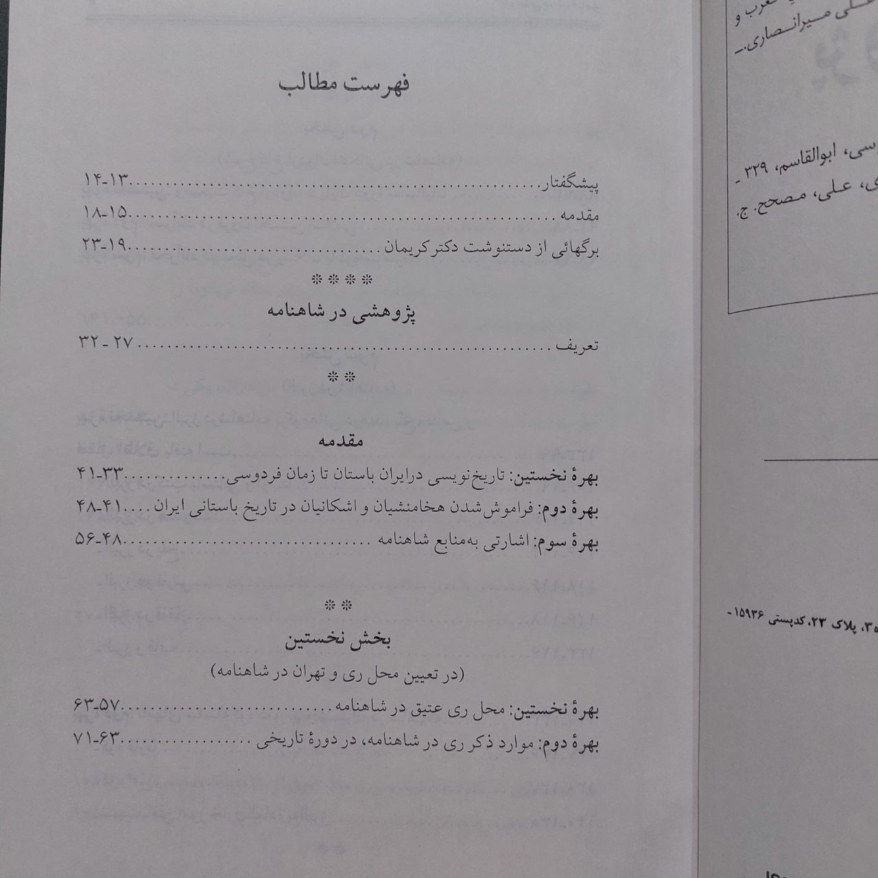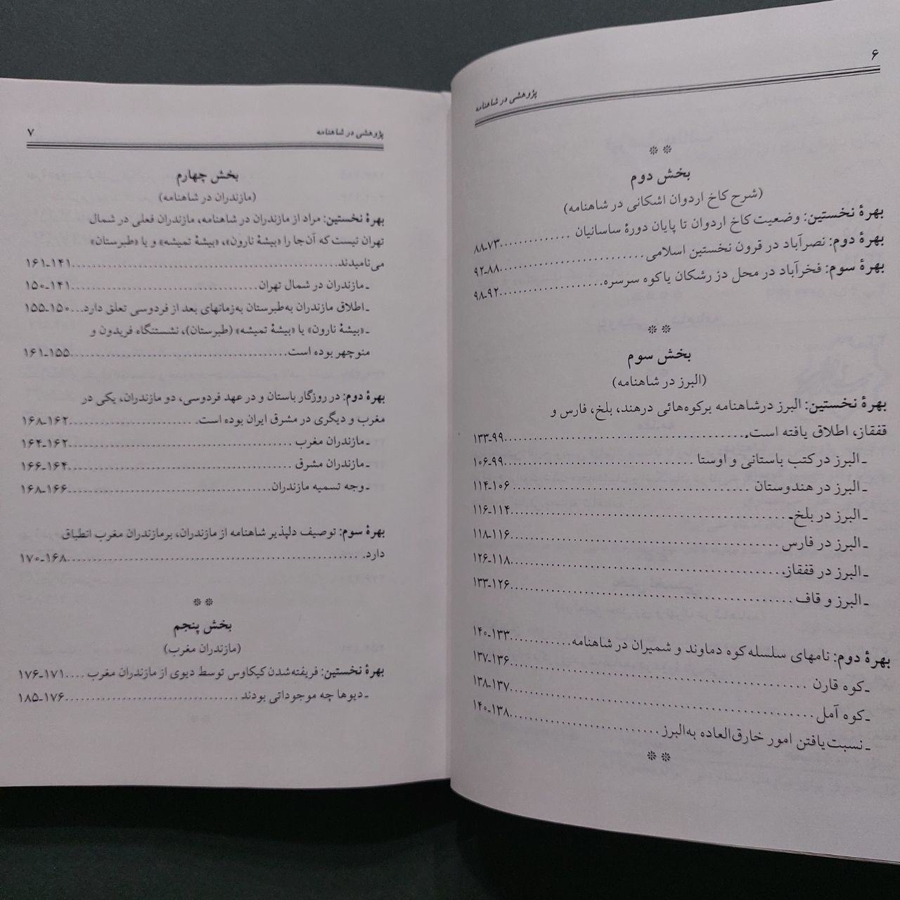 جهان و ایران در شاهنامه. نقاطی مانند ری و تهران، طبرستان، مازندران و البرز. مهمترین ویژگی این کتاب، ارائه نظراتی نو درباره طبرستان، مازندران و البرز در شاهنامه است.