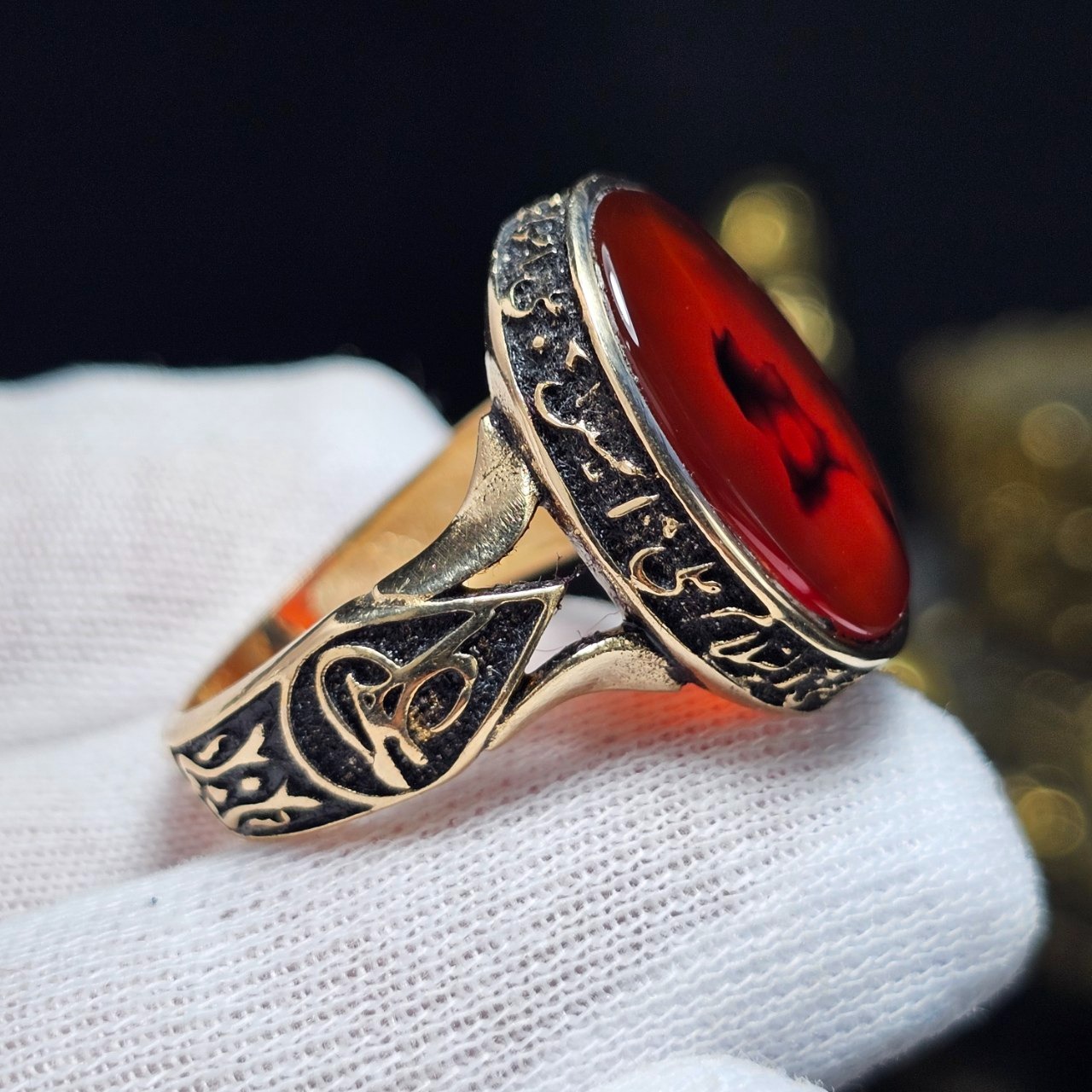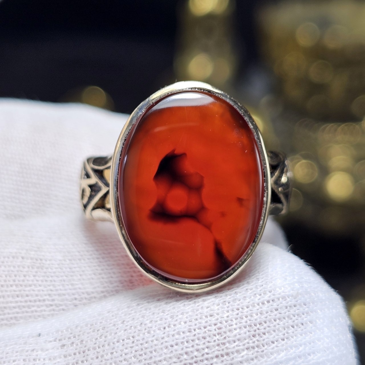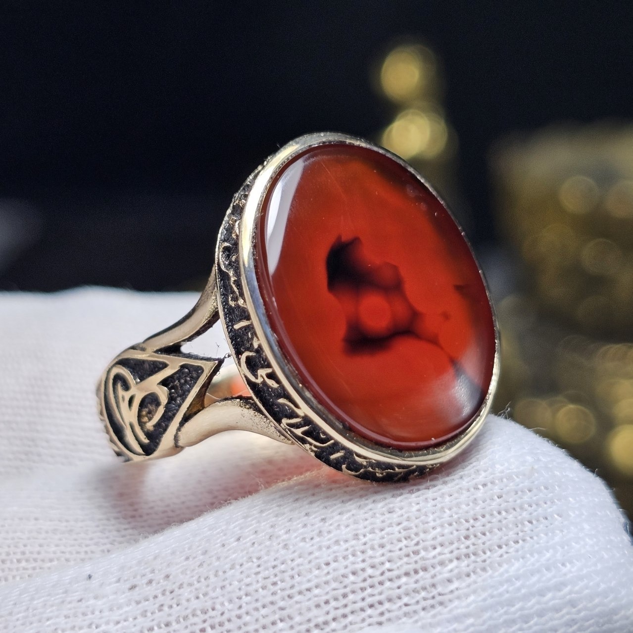 انگشتر طلاروس با سنگ عقیق معدنی خراسانی 37063
