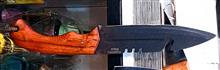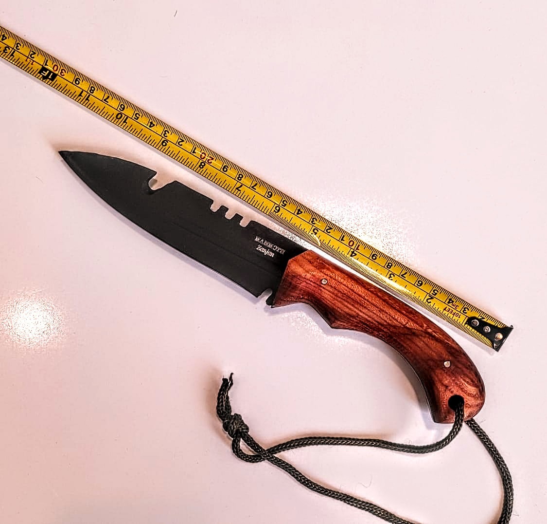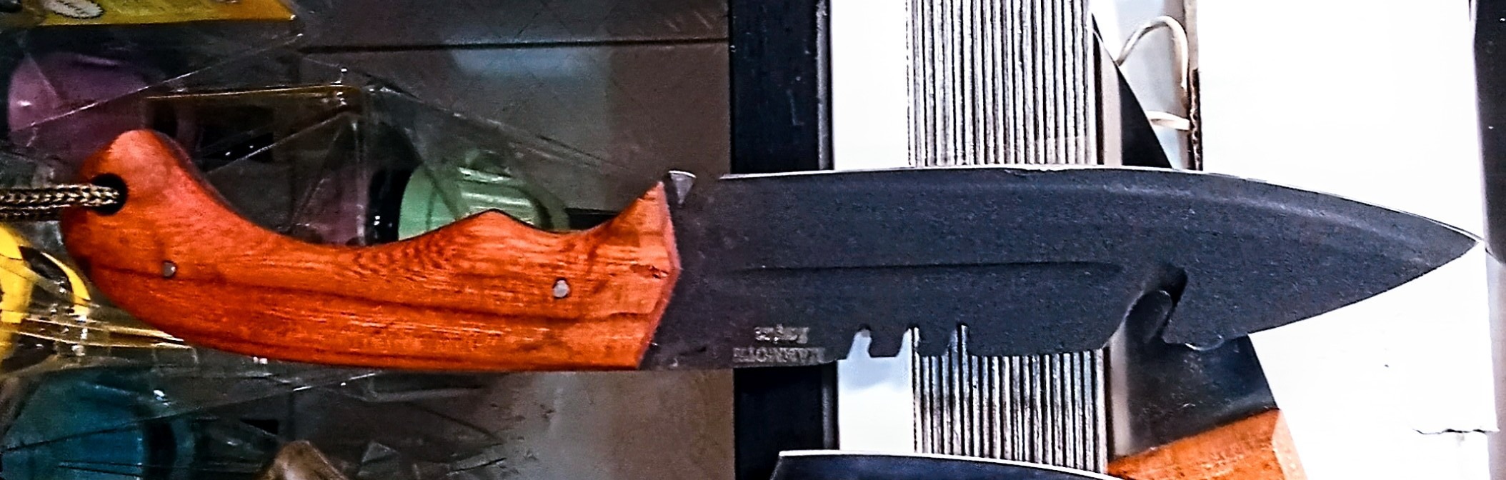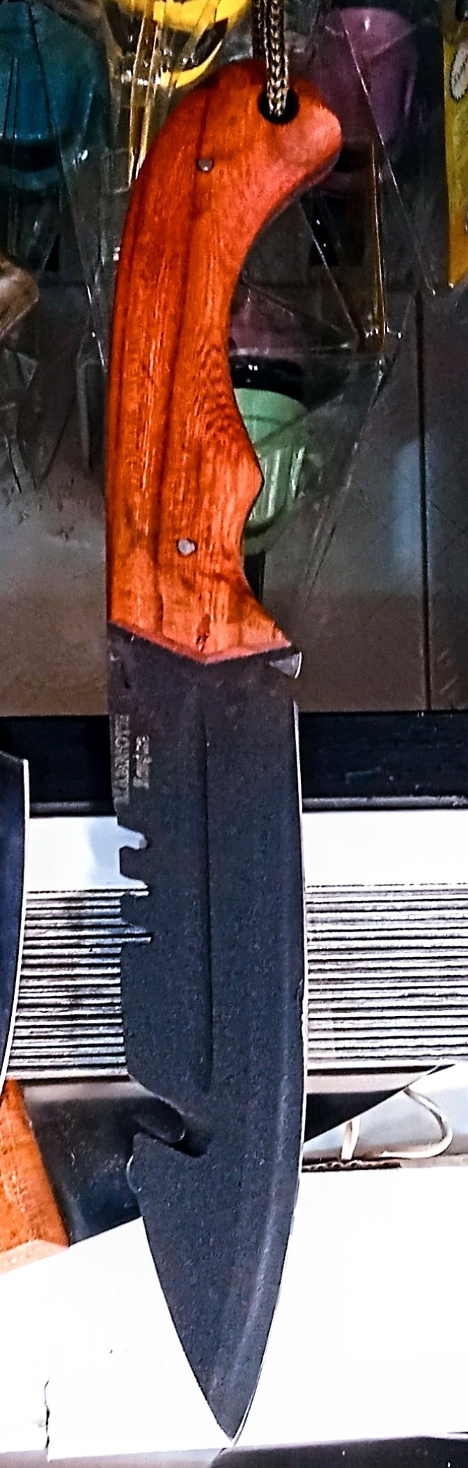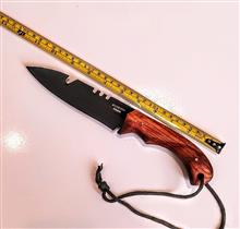 چاقو کارد شکاری طرح بوشکرافت مدل پرتابی دسته چوب روسی وتیغه دودی استیل فولاد خشکه تیز وبران به طول 25سانت و همراه قلاف و کلیه سفارشات چاقو بصورت بازاری وسفارشی کلکسیونی پذیرفته شده وتاسقف 8الی10روزارسال میشود