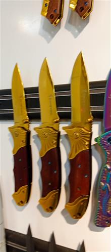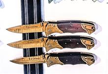 چاقو مدل شکاری فشاری قفلدار همراه قلاف دسته چوبی و فایبرگلاس مدل کبوتر پرنده در طرح مختلف طلایی دودی ومات نقرابی تیغه استیل فولاد خشکه تیز و برنده تضمینی ساخت کلمبیاسایز21/5سانت قیمت مناسب وانواع سفارش چاقو بازاری وکلکسیونی پذیرفته میشود