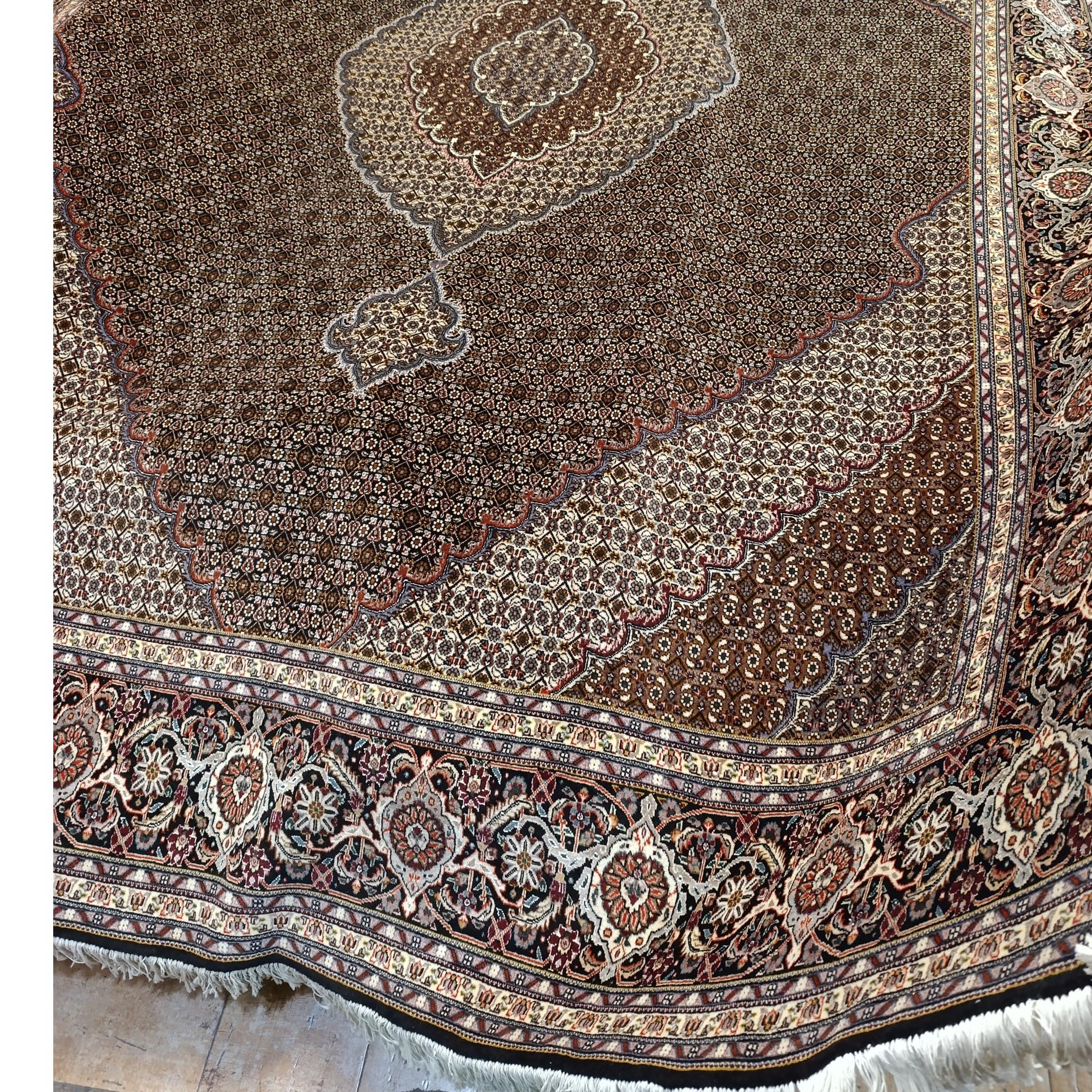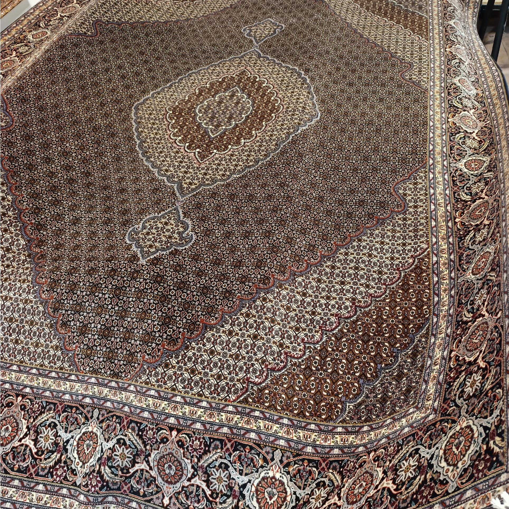 فرش 12متری نقشه ماهی بافت مرند حاشیه سرمه ای از لحاظ بافت مصال رنگ آمیزی درجه یک