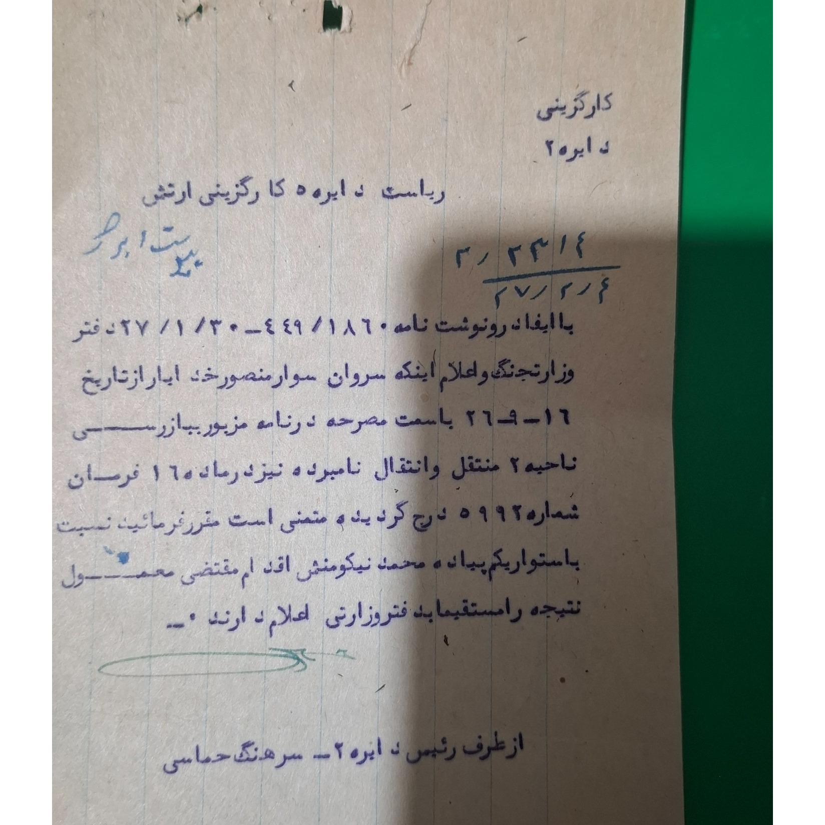 نام ریاست دایره کارگزینی ارتش سال 1327