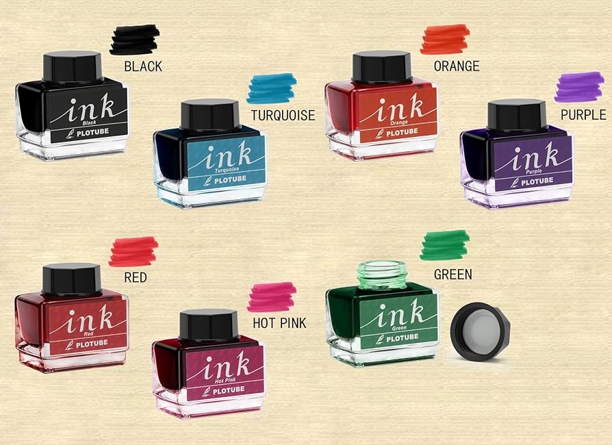 تنوع رنگها: بطریهای جوهر 7 رنگ - مشکی و فیروزهای و قرمز و سبز و بنفش و صورتی پررنگ و نارنجی، این مجموعه سنتی به خوبی نیازهای مختلف شما را در خلق زیبایی یا نقاشی برآورده میکند، این مجموعه سنتی، یک فرم هنری چند صد ساله را با «دست» منحصر به فرد شما برای خلق اثری که در تفکر و طراحی منتقل میشود، ترکیب میکند.