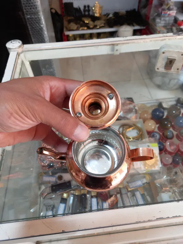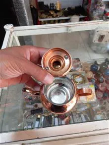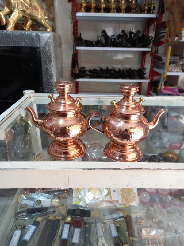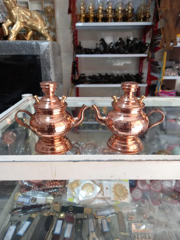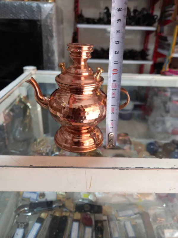 دوعدد قوری یا زعفران دم کن شکاری مسی با طراحی بی نظیر و کیفیت خوب دکوری وقابل استفاده اندازه حدود 12سانت دست ساز قلعکاری شده هدیه وکادوی ماندگار