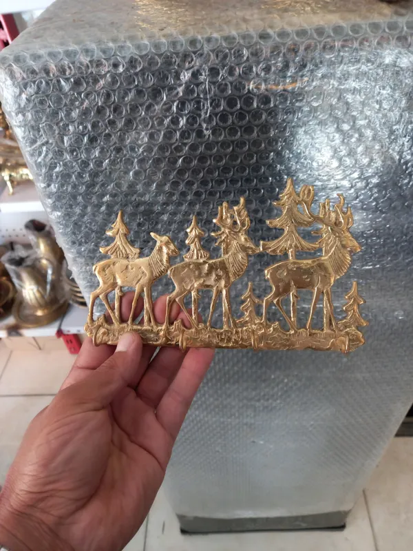 جاکلیدی برنجی باطراحی زیبا وکیفیت خوب دکوری وقابل استفاده جای4عدد کلید دارد نقش درخت وگوزن هدیه وکادوی ماندگار