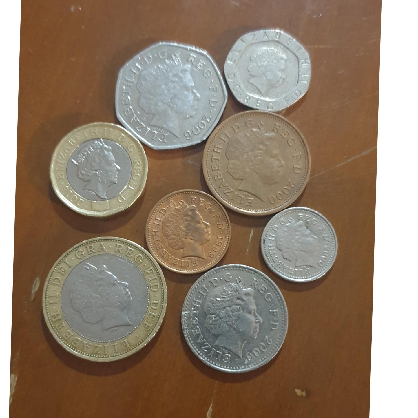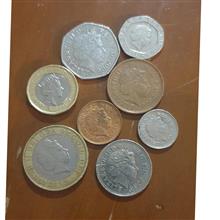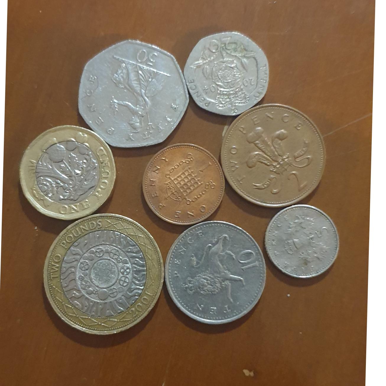 سکه ها شامل 1 ، 2 ،5 ،10 و 20 و 50 پنس و 1و2 پوند،